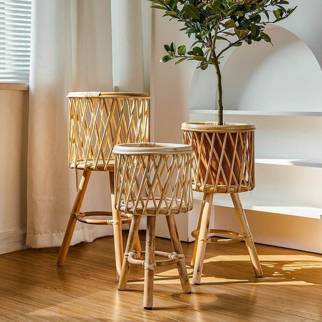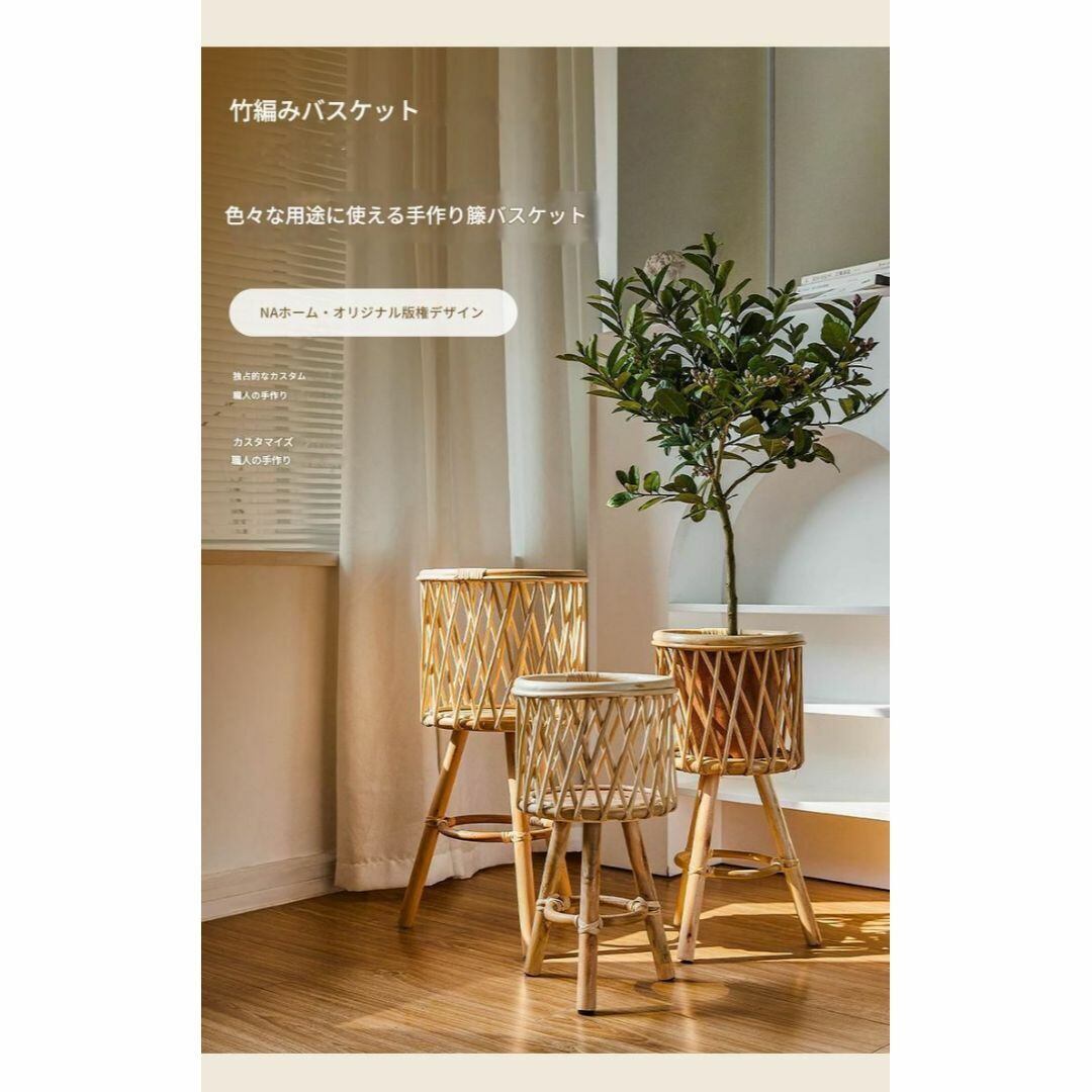 フラワースタンド 網状の籠 おしゃれ 収納テーブル 植木鉢棚 バルコニー リビング 玄関 竹 手作り 竹編み 自然 リラックス ナチュラル 耐久性 収納籠