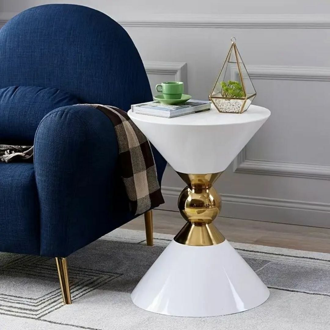 砂時計のような美しいフォルムが特徴の、おしゃれで機能的な円形サイドテーブル。高さ52cmで、カフェやリビング、寝室、書斎、ホテル、オフィスなど幅広いシーンに最適。モダンで洗練された雰囲気を演出し、ゴージャスな空間を引き立てます。インテリアとしても映えるデザイン性と、実用性を兼ね備えたスタイリッシュなコーヒーテーブルです。
