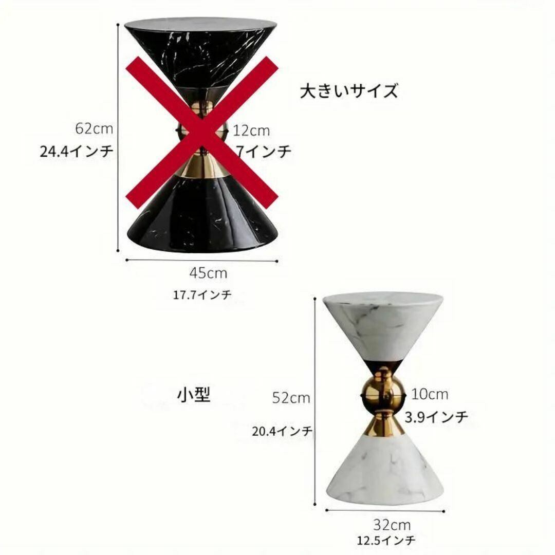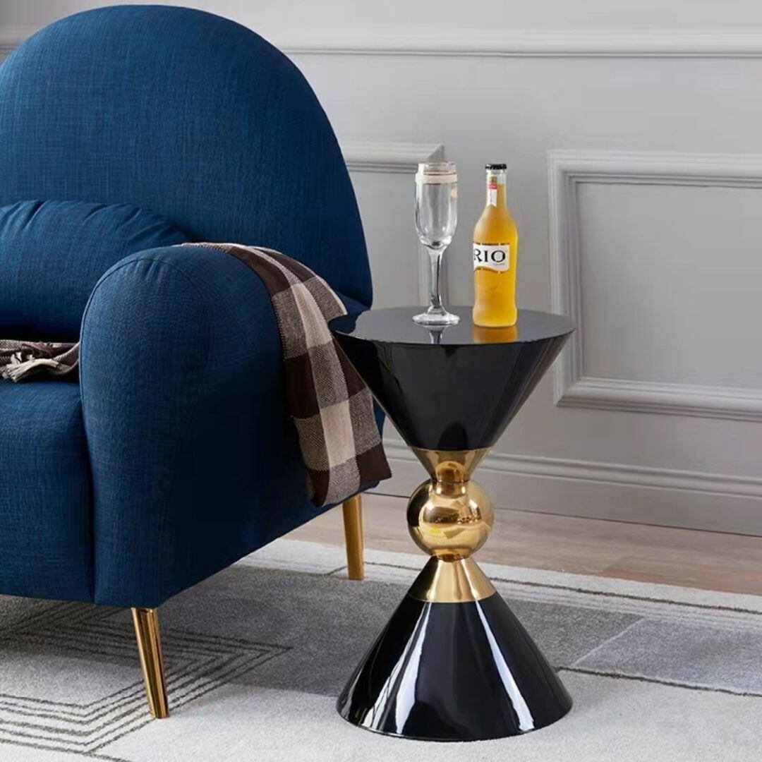 サイドテーブル コーヒーテーブル おしゃれ 機能的 円形 砂時計のような形 高さ52cm カフェ リビング 寝室 書斎 ホテル オフィス モダン ブラック ゴージャス
