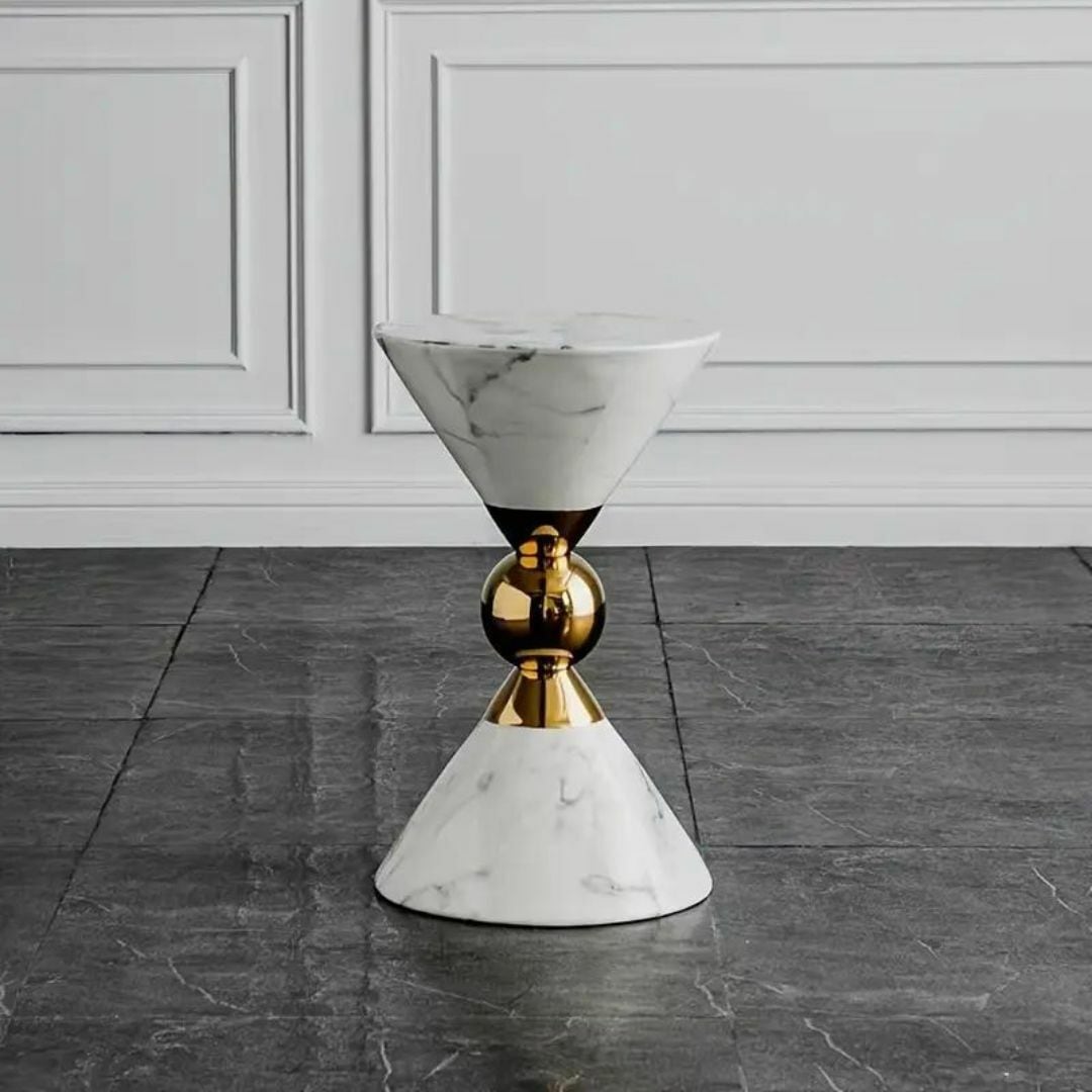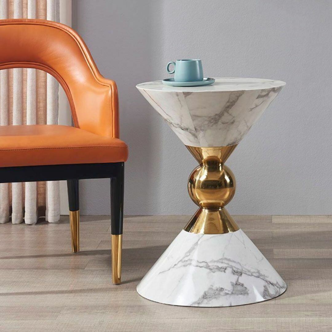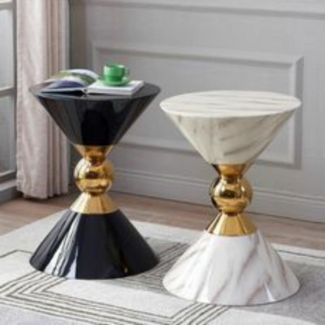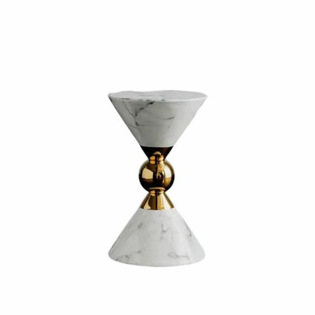 サイドテーブル コーヒーテーブル おしゃれ 機能的 円形 砂時計のような形 高さ52cm カフェ リビング 寝室 書斎 ホテル オフィス モダン ホワイト 大理石柄 ゴージャス