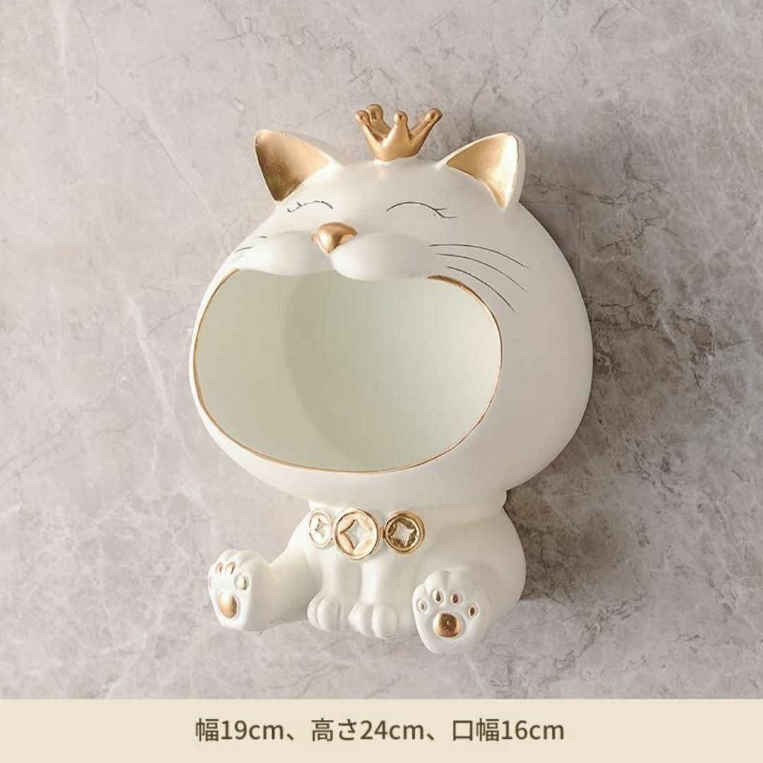 口を開けたネコのユニークなデザインが魅力的な壁掛け小物入れ。口の部分が収納スペースになっており、鍵や小物を入れるのに便利です。ホワイト、グリーン、オレンジ、ブルーのカラーバリエーションがあり、インテリアに合わせて選べます。リビングや寝室のウォールデコレーションとしてもおしゃれで、可愛らしいデザインはプレゼントやギフトにも最適。実用性と可愛さを兼ね備えたアイテムです。
