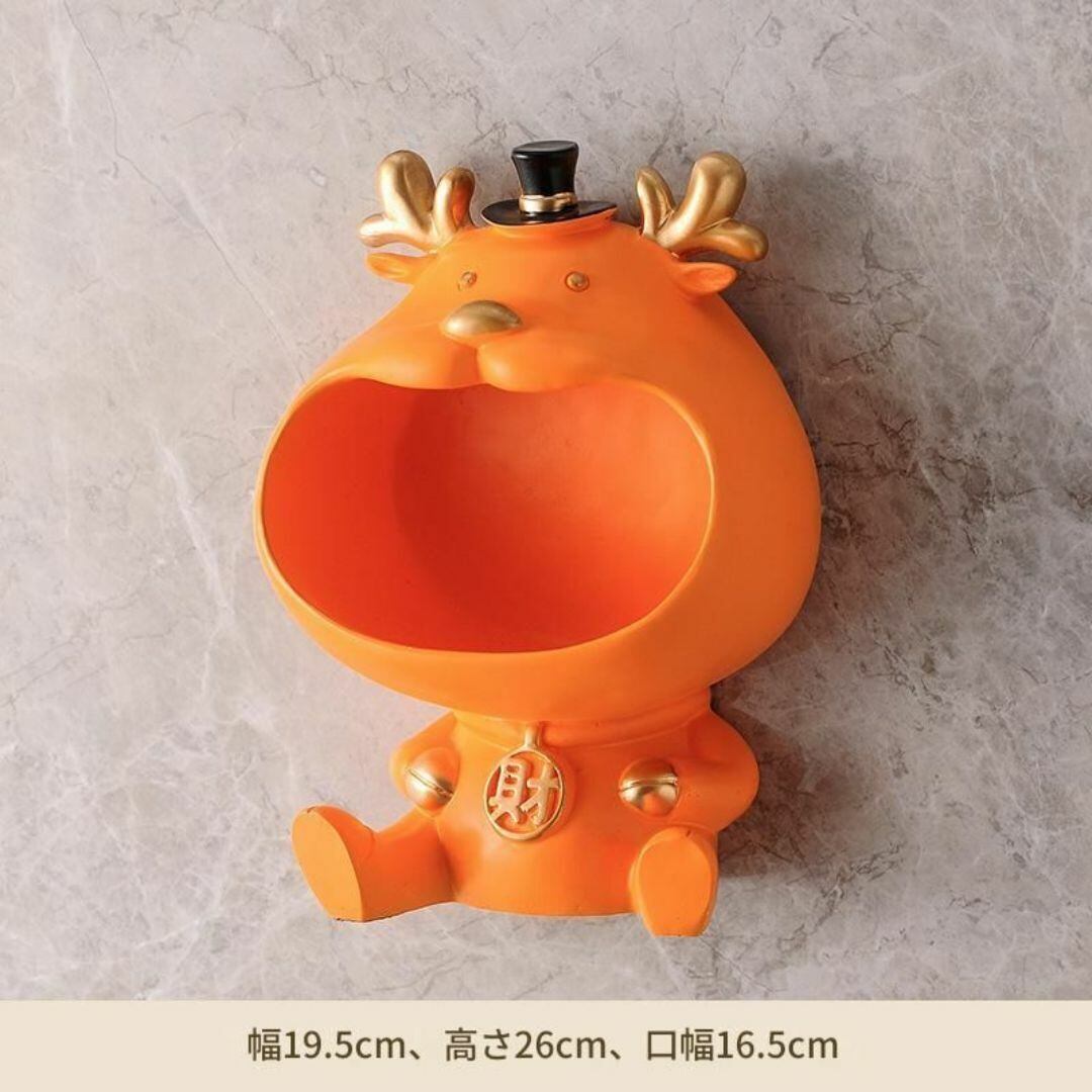 小物入れ 壁掛け 口を開けた鹿 動物 口の部分が小物入れ カラーバリエーション ホワイト グリーン オレンジ ブルー かわいい ウォールデコレーション プレゼント ギフト リビング 寝室 キーケース おしゃれ