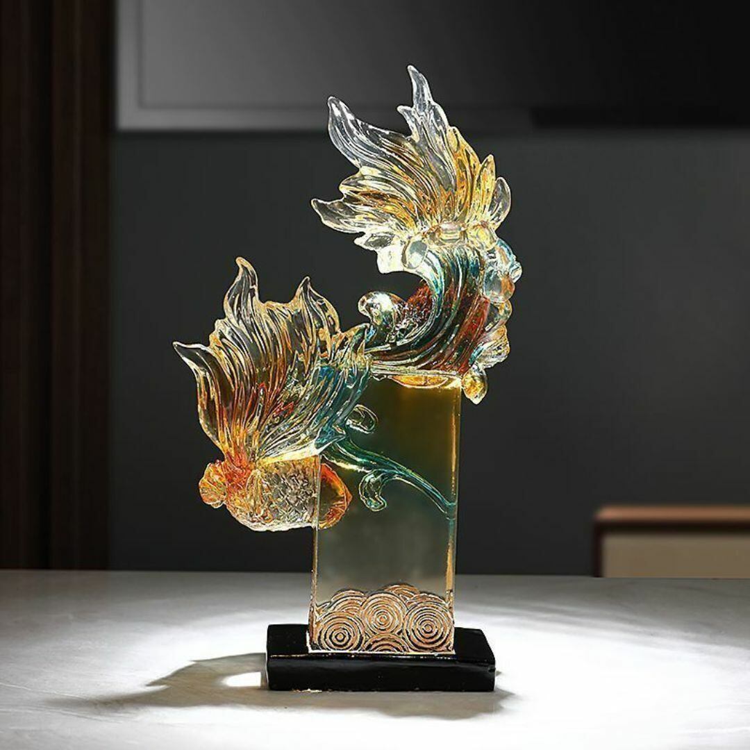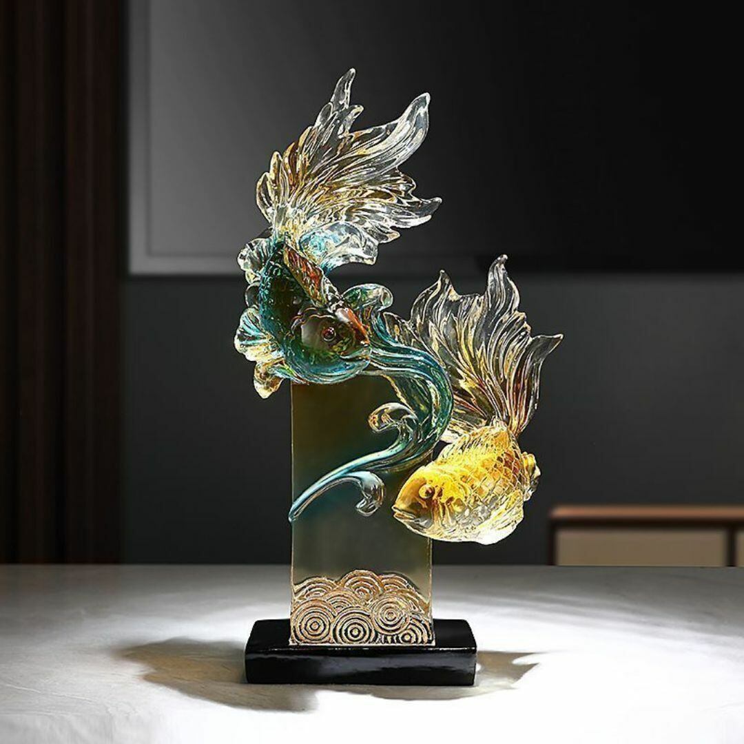 この美しい金魚のオブジェは、樹脂素材で作られており、どんな空間にも溶け込むおしゃれなデザインが魅力です。玄関や寝室、リビングルームなど、さまざまなインテリアにぴったりのアイテムです。幻想的な雰囲気を演出し、訪れる人々を惹きつける存在感を持っています。