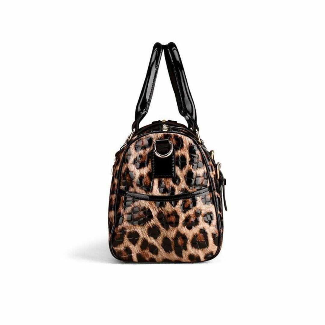 ヒョウ柄がアクセントのスタイリッシュなレディースハンドバッグ&ショルダーバッグ。上質な牛皮素材を使用し、高級感あふれるデザインに仕上げました。ショルダーストラップ付きで、手持ち・肩掛けの2WAY仕様。ブラックを基調とした大人おしゃれなデザインで、旅行やショッピング、ビジネス、デートなど幅広いシーンに対応します。ゴージャスさと実用性を兼ね備えた、ワンランク上のファッションアイテムです。