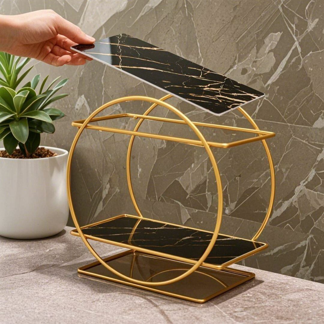 収納ラック コスメラック テーブル用 リングの柱 おしゃれ カラーバリエーション ブラック 黒 大理石柄の台座 取り外し可能 多機能 リビング キッチン 寝室 バスルーム 洗面台