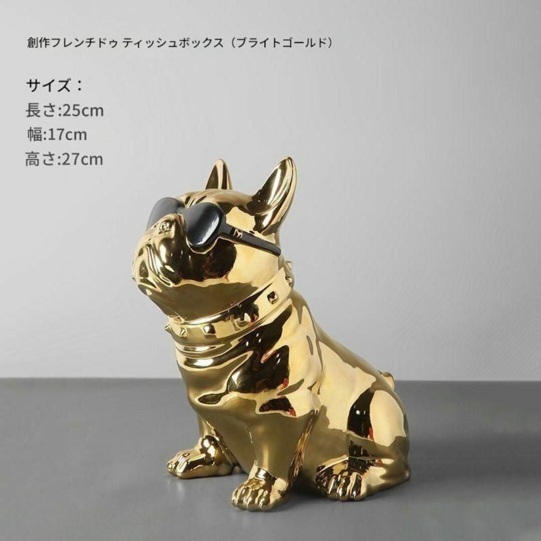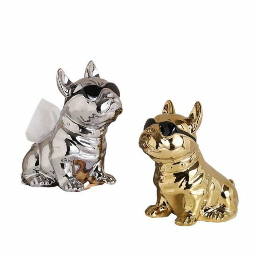 ティッシュボックス ブルドック 置物 動物 コンテナ 背中から引き抜く かわいい おしゃれ ティッシュケース 車内収納 樹脂 リビング 寝室 カラーバリエーション シルバー ゴールド