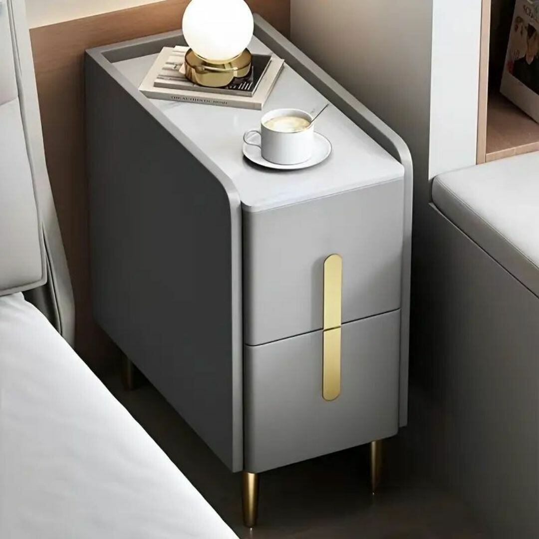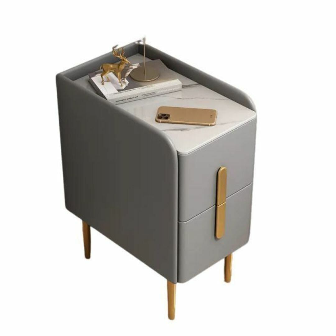 キャビネット テーブル 二段収納 引き出し おしゃれ シンプル スタイリッシュ 寝室 リビング 金の取っ手 独立 高さ46cm カラーバリエーション ホワイト 白 グレー 灰色