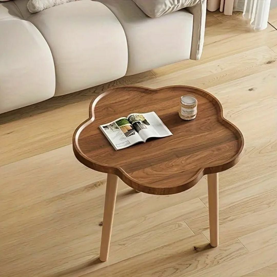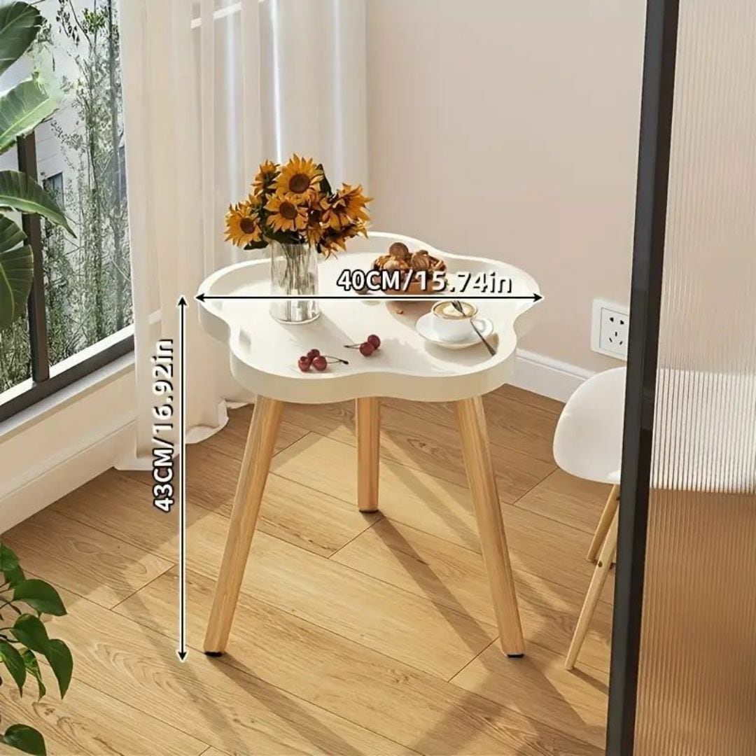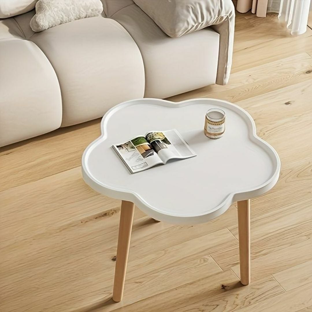 花形のプレートが特徴的なサイドテーブル。零れ防止の窪みが施され、実用性とデザイン性を両立。三脚構造で安定感があり、カフェやリビング、寝室、書斎、ホテル、オフィスなど幅広いシーンにマッチします。おしゃれでモダンな雰囲気を演出するコーヒーテーブル。カラーバリエーションはホワイトとウッドカラーの2種類。