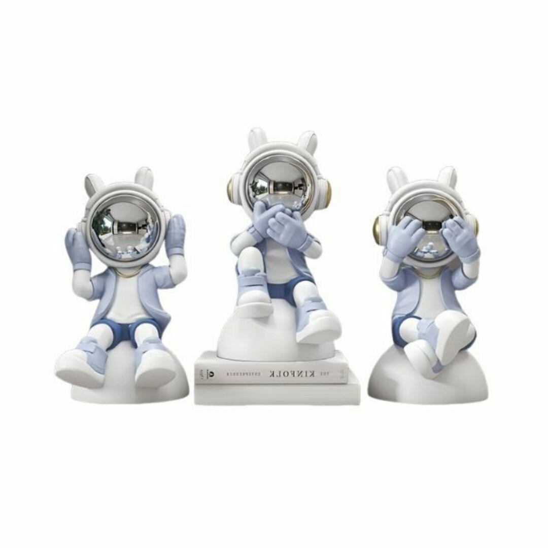 置物 オブジェ 宇宙飛行士モデル バリエーション 見ざる 言わざる 聞かざる リアル 屋内 ファンタジー おしゃれ モダン 玄関 リビング 樹脂 レジン 装飾 プレゼント ギフト ブルー