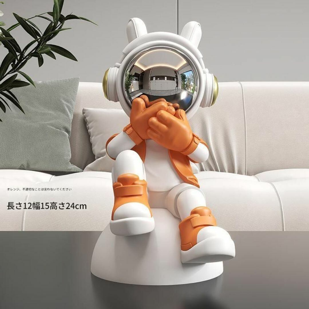 置物 オブジェ 宇宙飛行士モデル バリエーション 見ざる 言わざる 聞かざる リアル 屋内 ファンタジー おしゃれ モダン 玄関 リビング 樹脂 レジン 装飾 プレゼント ギフト オレンジ