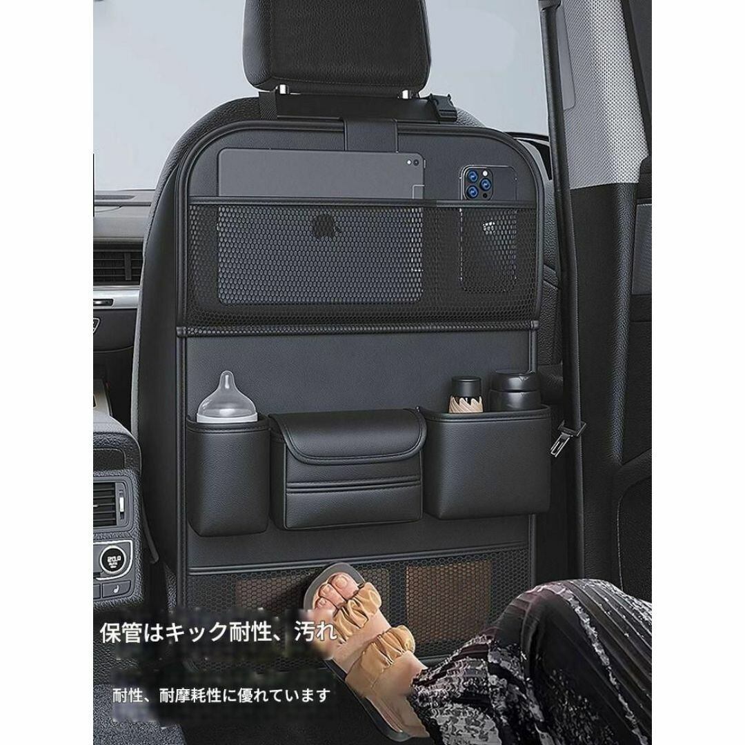車内アクセサリー シート用 ボトルホルダー 後部座席用 収納ラック 折りたたみテーブル 多機能 スマートフォン置き パソコン置き ブラック 黒 前の席にぶら下げる用 レザー 便利 たくさんのポケット