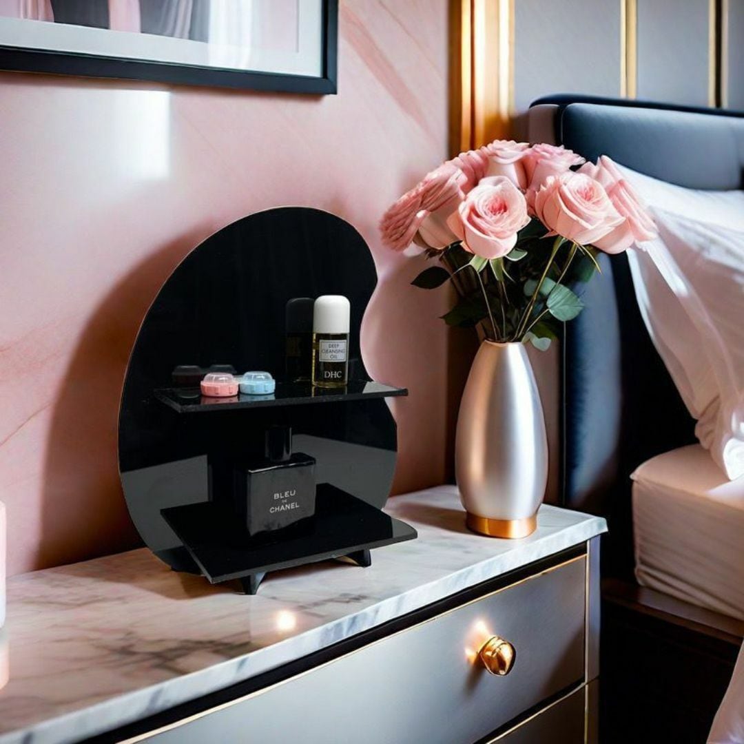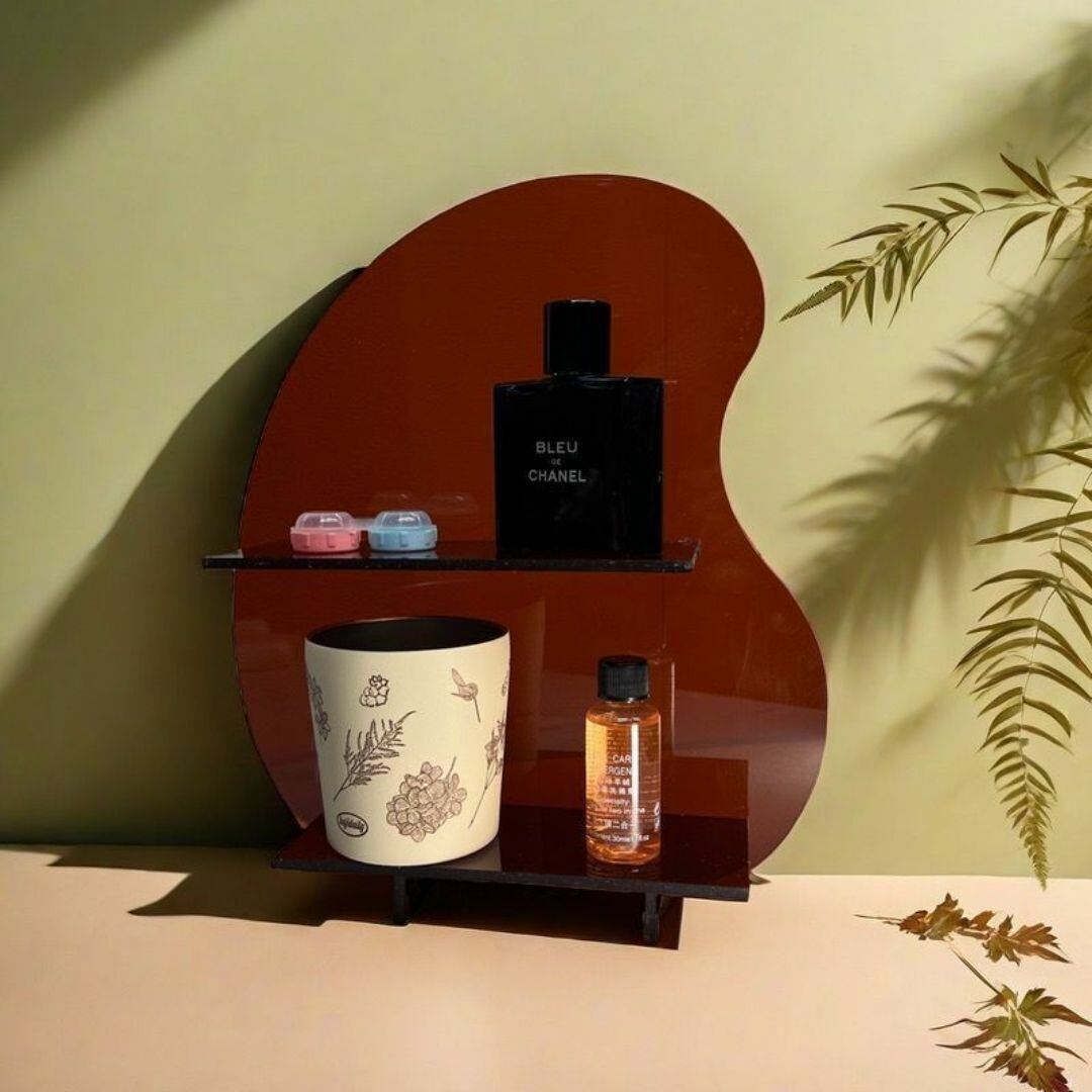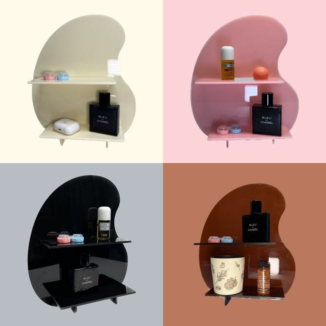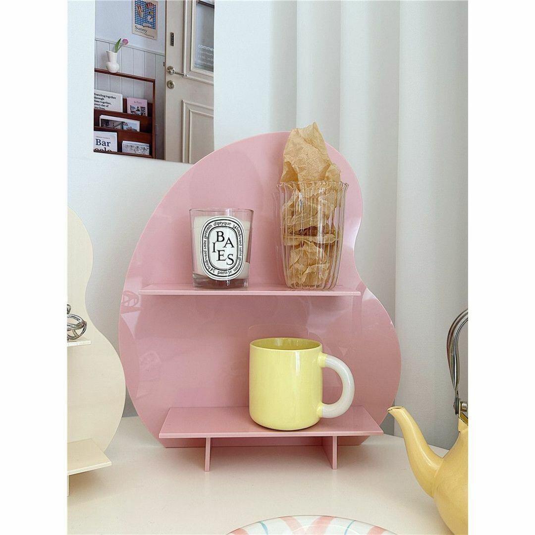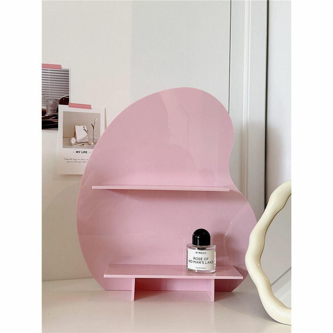 シンプルでおしゃれな二段式収納棚。アクリル板を使用し、角のない優しいフォルムが特徴。リビングやキッチン、寝室、バスルーム、洗面台など、さまざまな場所で活躍します。コスメや小物の整理にぴったりで、スッキリとした空間を演出。カラーバリエーションはブラック、ピンク、クリア、ホワイト、ブラウンの5色展開。機能性とデザイン性を兼ね備えた収納アイテムです。