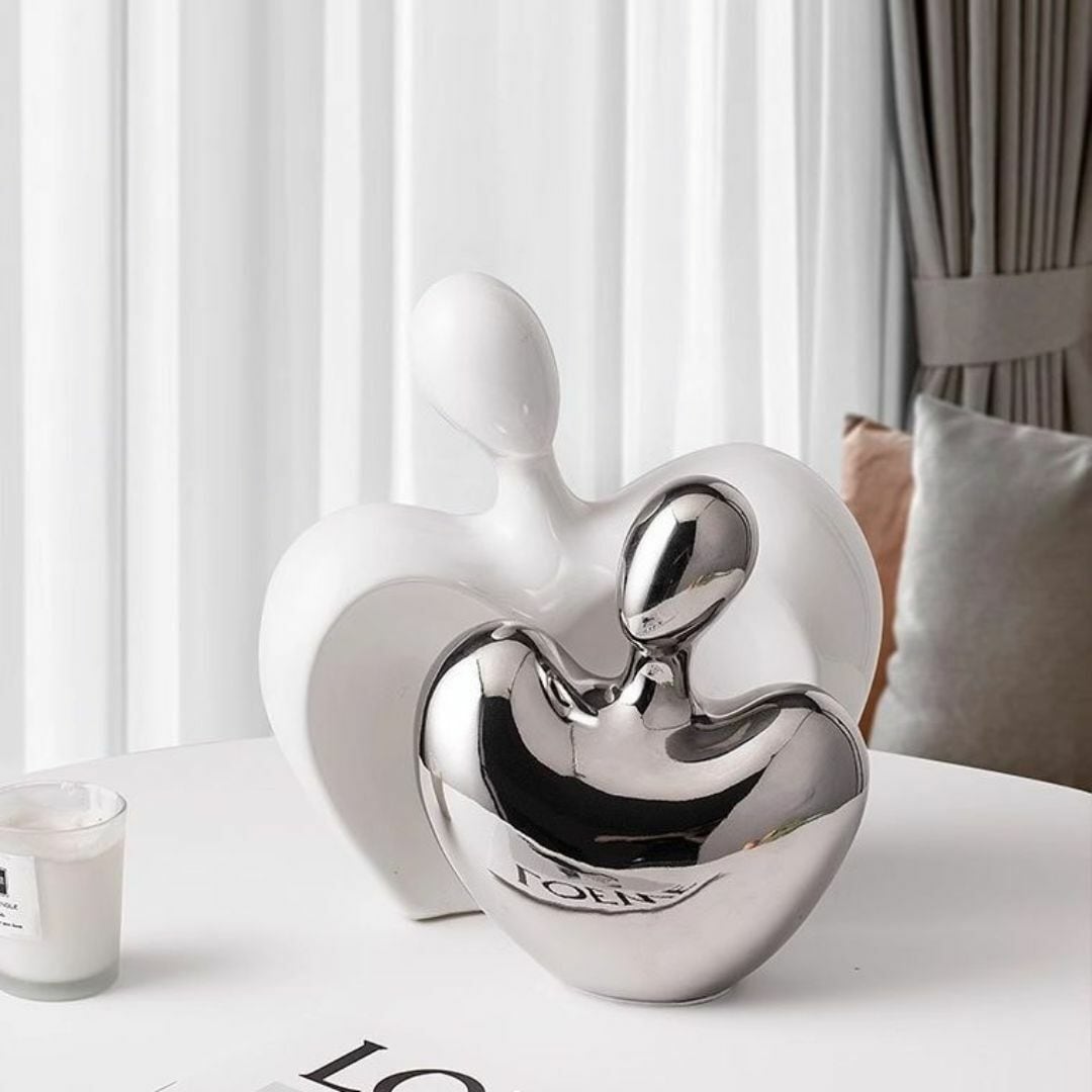 人とハートをモチーフにした、洗練されたデザインの置物。二人組のシルエットが愛や絆を象徴し、ホワイトとシルバーの上品なカラーがインテリアに馴染みます。セラミック素材ならではの滑らかな質感が魅力で、シンプルながらも存在感のあるデザイン。リビングや玄関のアクセントとして、落ち着いた雰囲気を演出。大切な人へのギフトやプレゼントにも最適な、おしゃれなオブジェです。