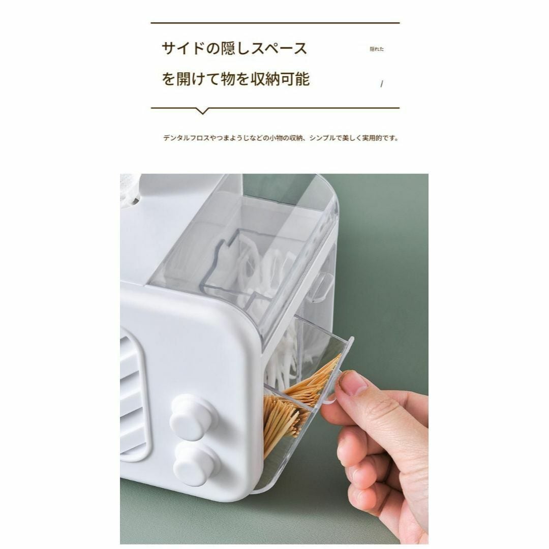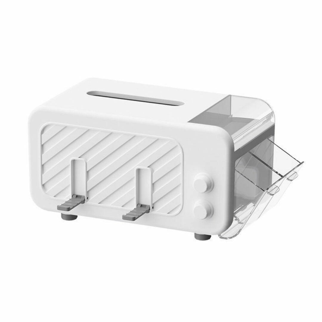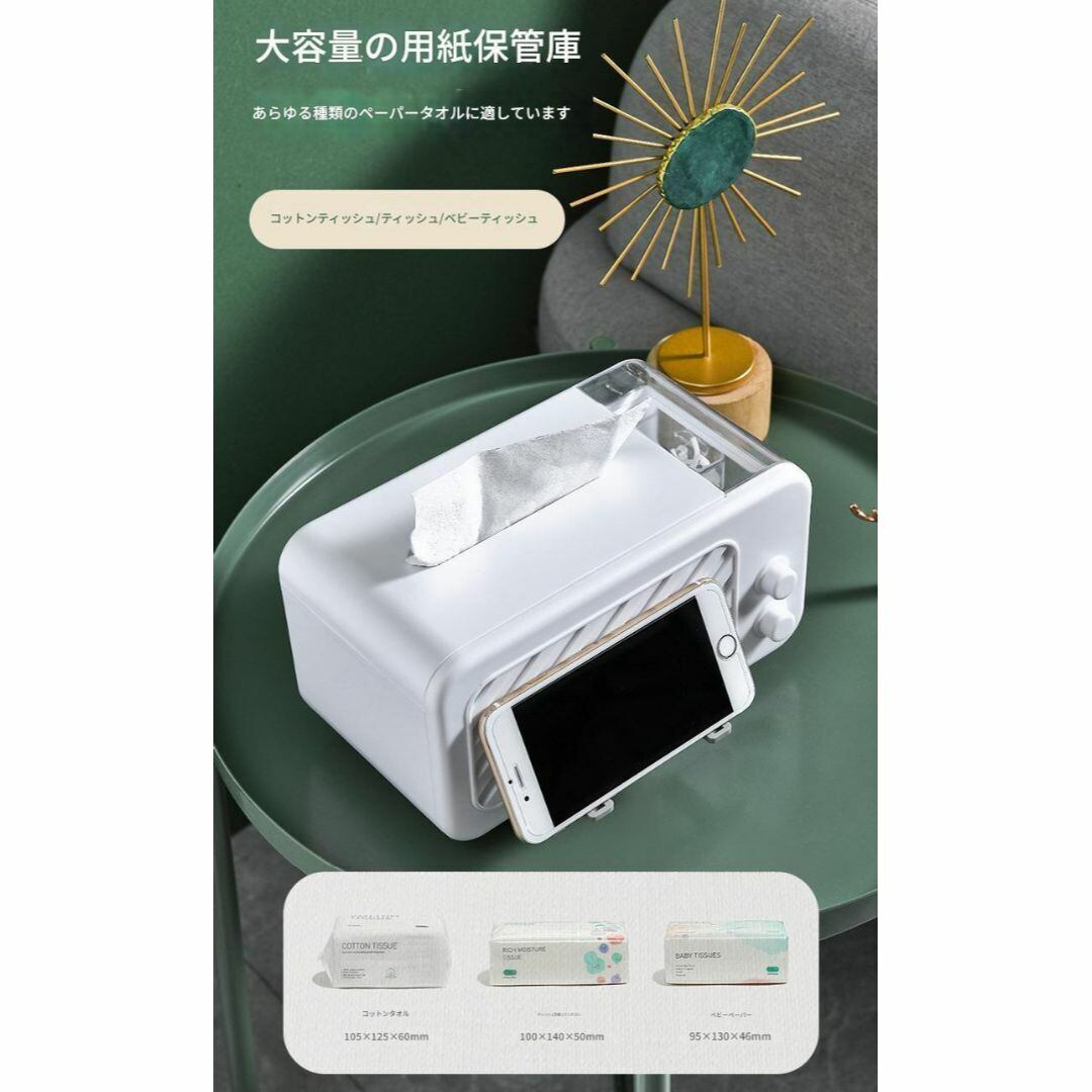 ティッシュボックス コンテナ おしゃれ ティッシュケース ホワイト 多機能 スマホスタンド 内部にバネ搭載 小物入れ 糸ようじ 綿棒 コスメ リビング 寝室 洗面所 手軽 便利