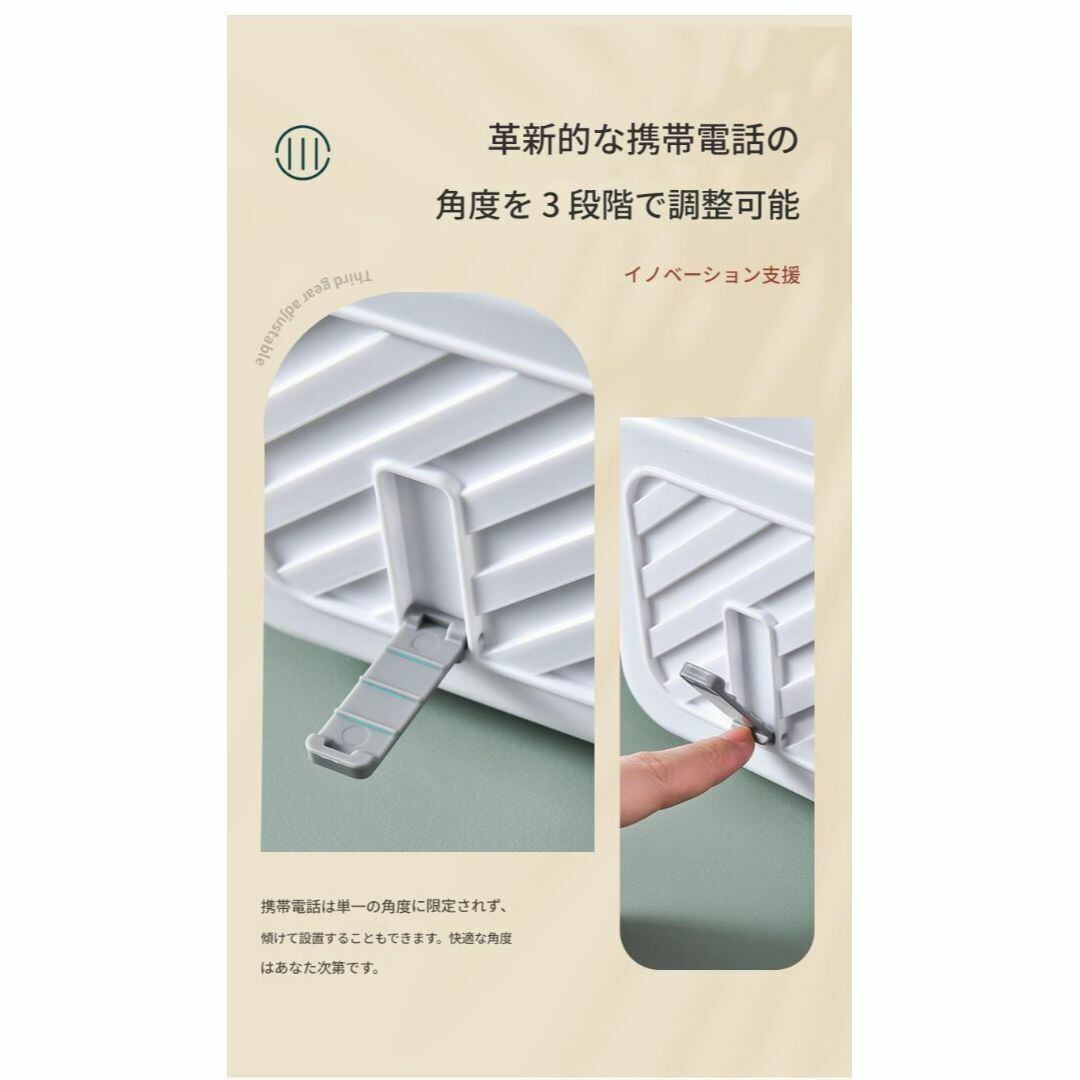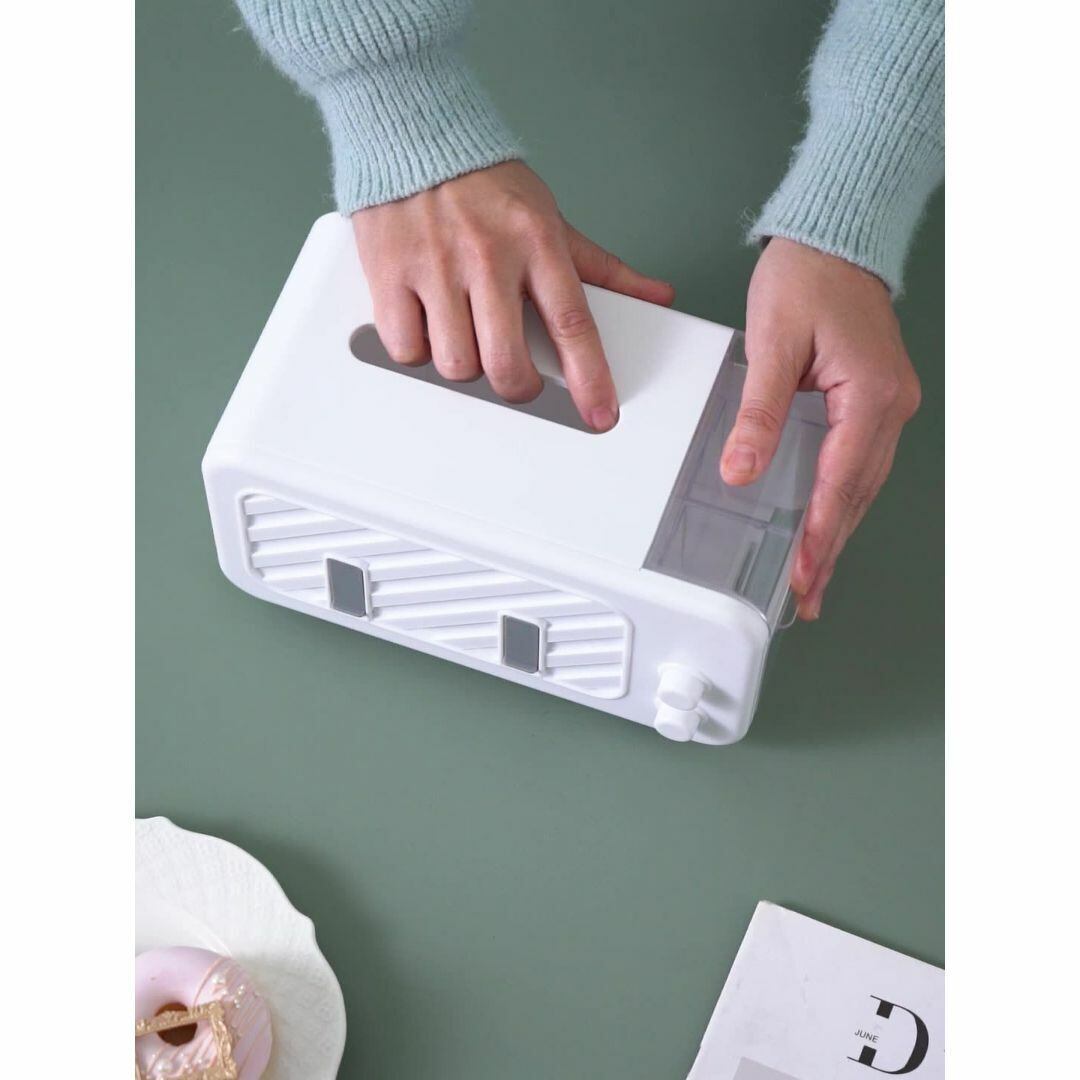 シンプルでおしゃれなデザインのティッシュボックス。ホワイトカラーがどんな空間にも馴染み、リビングや寝室、洗面所など幅広く活躍します。内部にはバネを搭載し、ティッシュの取り出しがスムーズ。さらに、スマホスタンド機能付きで動画視聴にも便利。小物入れスペースがあり、糸ようじや綿棒、コスメなどの収納にも対応。手軽で便利な多機能ティッシュケースです。