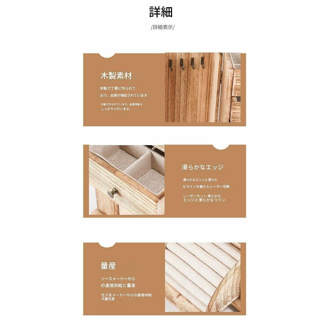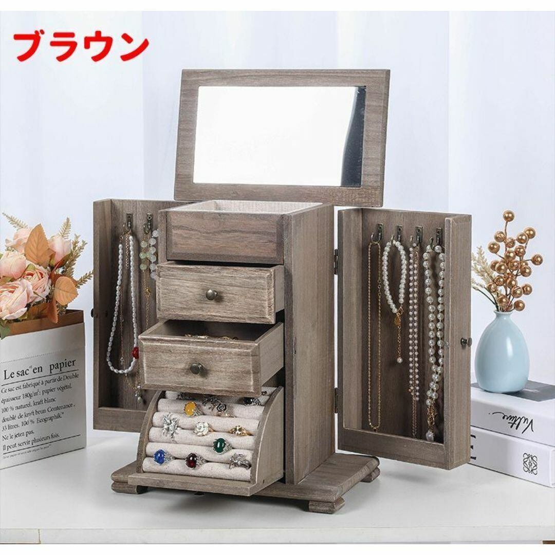 ジュエリーボックス アクセサリー 収納棚 2段の引き出し 指輪用収納スペース 観音開き ネックレスかけ 鏡 ミラー おしゃれ 多機能 カラーバリエーション ライトブラウン ブラウン ブラック 木製 小物入れ