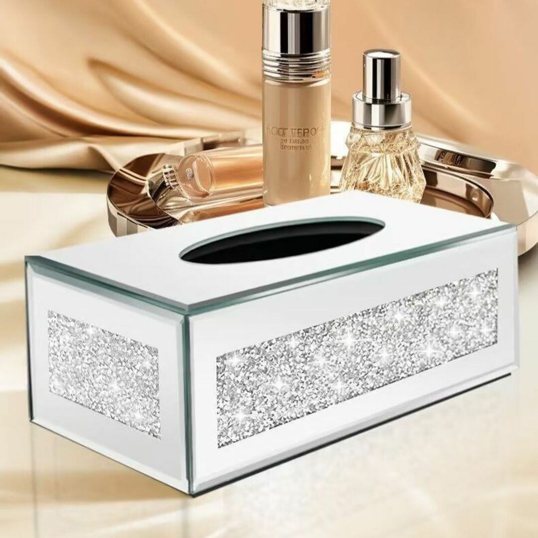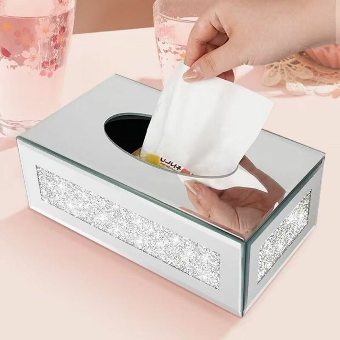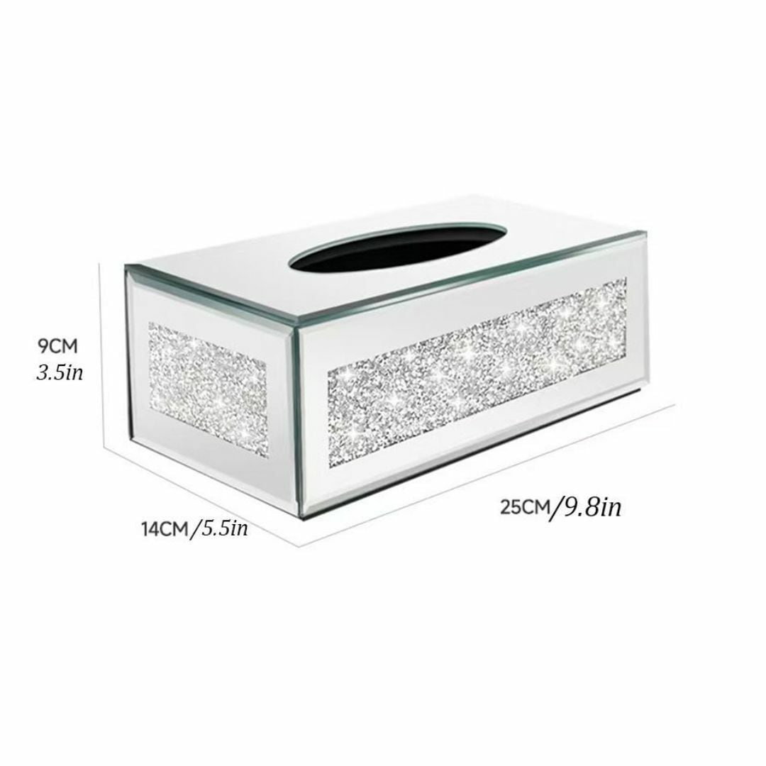 ティッシュボックス ゴージャス おしゃれ ティッシュケース ガラス バスルーム リビング 寝室 多様な形状のティッシュ 引き出し口固定 ハードタイプ インテリア ダイヤを散らしたようなデザイン シルバー