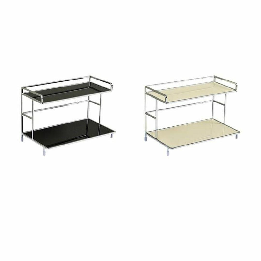 収納ラック コスメラック テーブル用 2段 下の台座が広い おしゃれ カラーバリエーション ホワイト ブラック 多機能 リビング キッチン 寝室 バスルーム 洗面台 アクリル