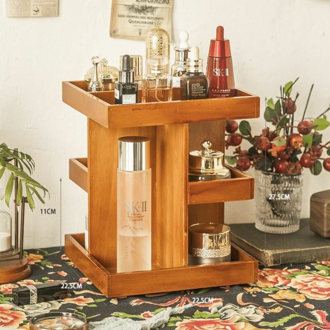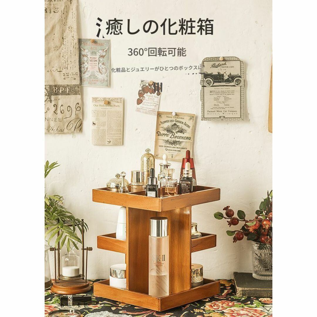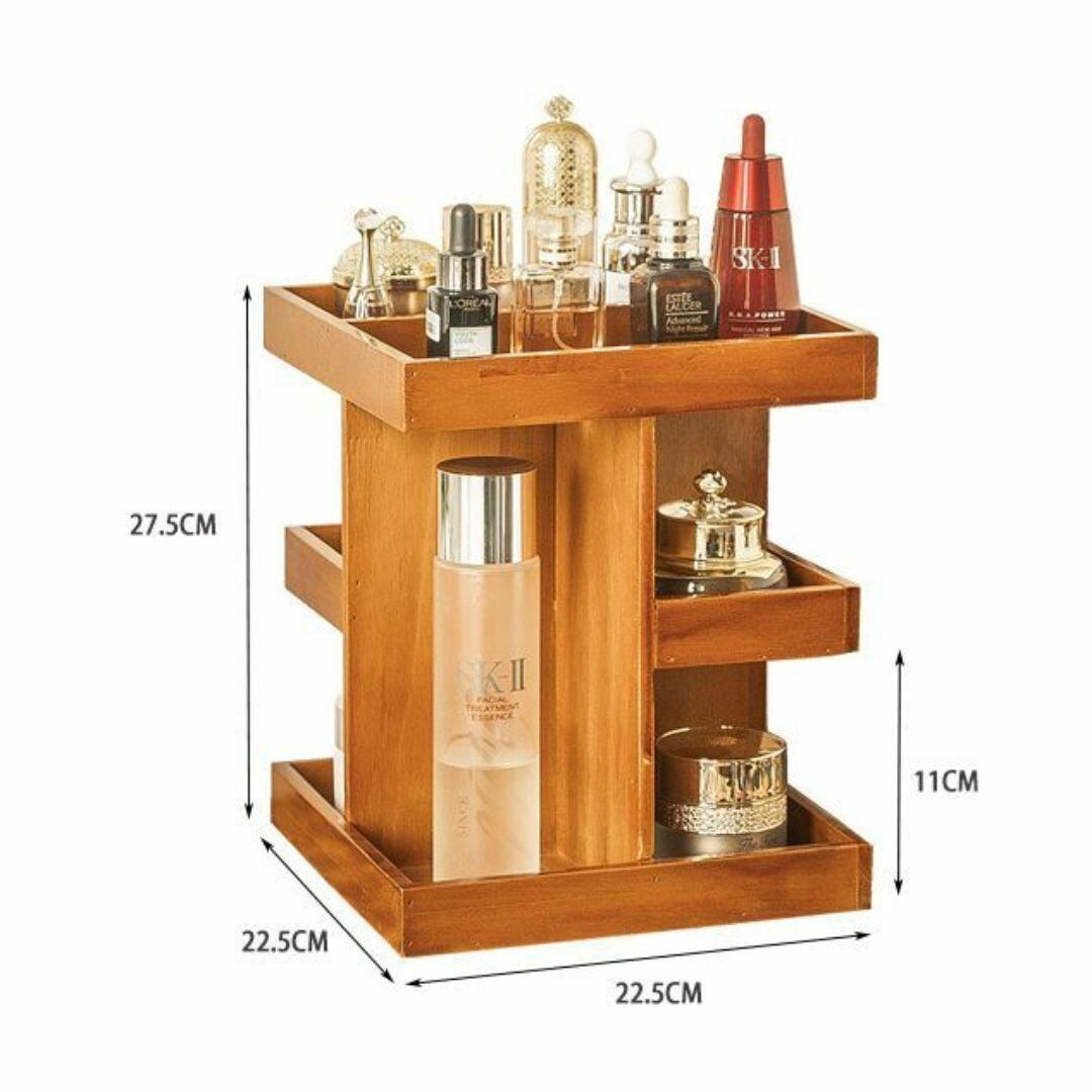 収納ボックス デスクトップ 360度回転式 多くの収納スペース 細かい仕切り おしゃれ 収納ケース 室内 コスメ収納 便利 本 ドレッサー 化粧ボックス 木製 スキンケア 高さ27.5cm