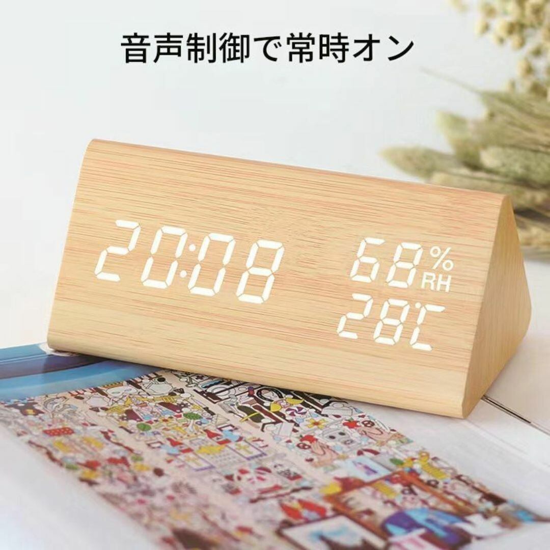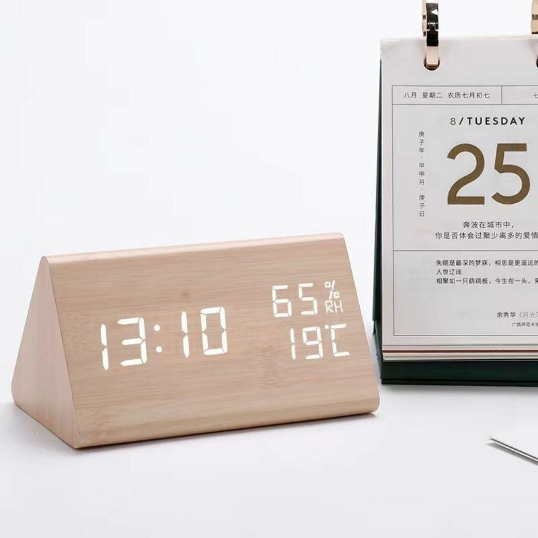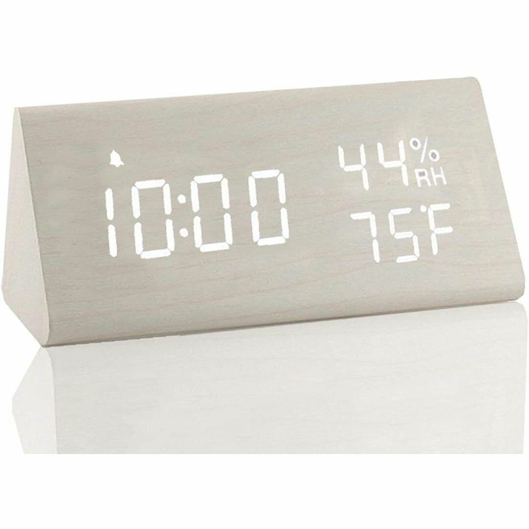置時計 デジタル時計 置物 シンプル 三角 おしゃれ カラーバリエーション ベージュ ホワイト ブラウン ブラック 湿度 リビング 寝室 インテリア モダン 温度 ユニーク USB充電 コンパクト