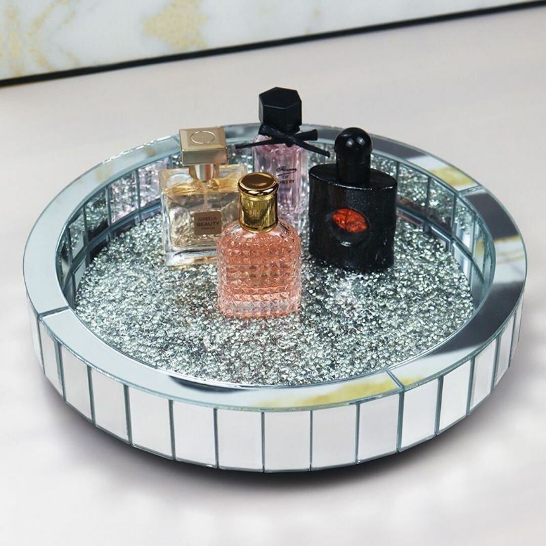 小物入れ 小物置き 360度回転 コスメ置き 収納トレイ おしゃれ 円形 灰皿のような形 多機能 アクセサリー シルバーとホワイトのデコレーション きらきら ゴージャス ガラス製 オフィス リビング 洗面台 ドレッサー