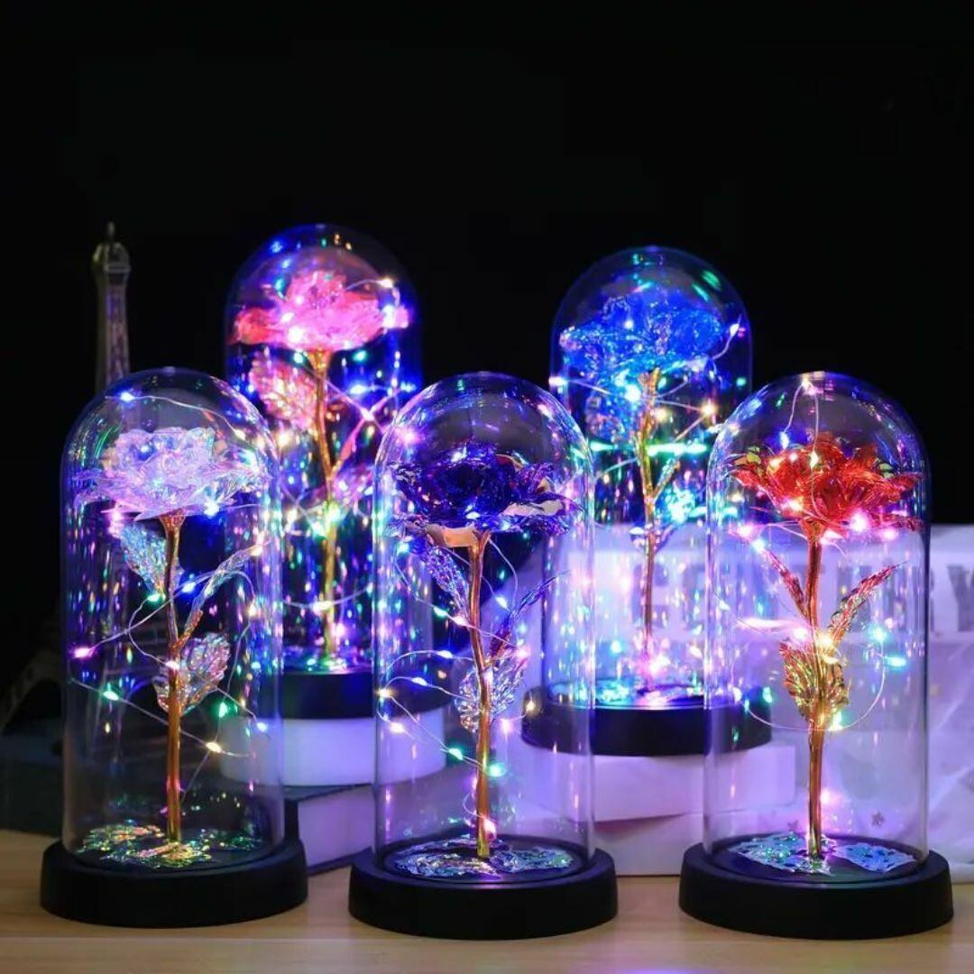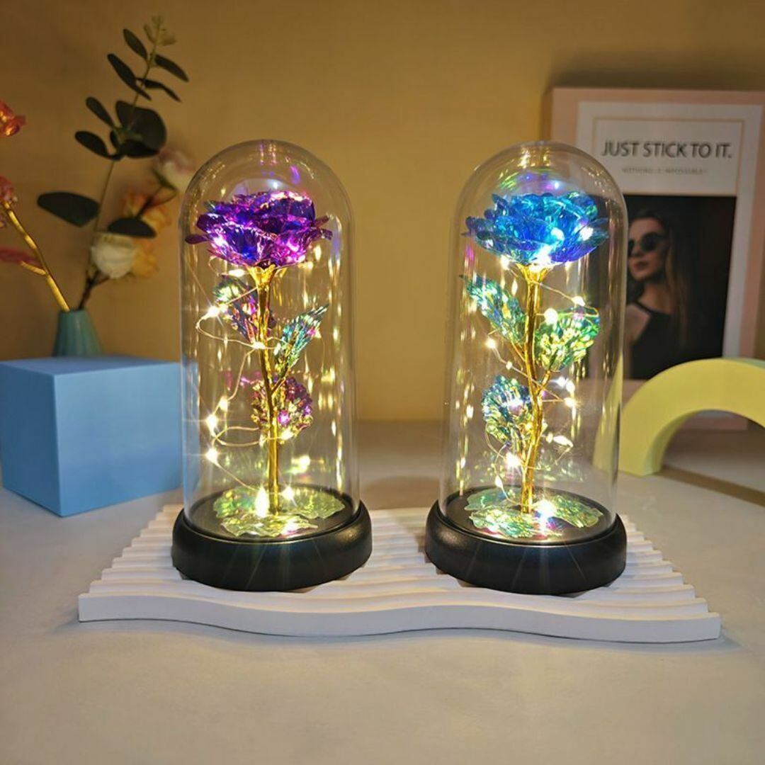 一厘の花を閉じ込めたようなドーム型の置物ライト。ロマンチックで幻想的な雰囲気を演出し、リビングや寝室のアクセントとしてぴったりです。透明感のあるアクリル素材に包まれた花が、やさしい光とともに空間を彩ります。スイッチ操作で手軽に点灯でき、単三電池式で場所を選ばず設置可能。カラーバリエーションはレッド、レインボー、ピンク、パープル、ブルーの5色展開で、好みに合わせて選べます。かわいらしさと上品さを兼ね備えたデザインは、ギフトやプレゼントにも最適です。