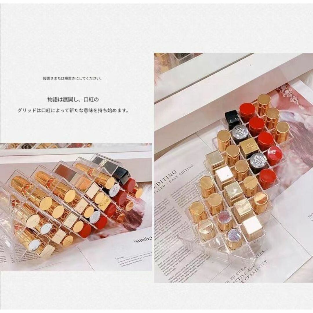 コスメ収納 小物入れ 口紅 リップ 28本収納 スタンドタイプ クリアケース 化粧品 多機能 正方形の枠 1枠の幅2.5cm おしゃれ 便利 メイクボックス 収納
