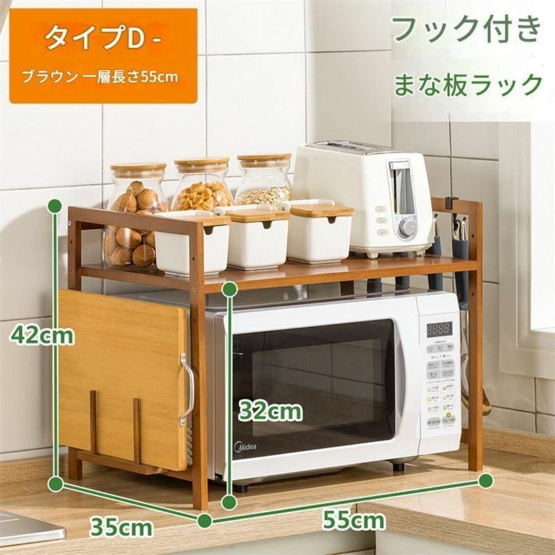 キッチンラック 電子レンジ用スペース まな板用スペース 上部に棚 竹 おしゃれ 多機能 キッチン収納 4つのフック付き 調理器具 カラーバリエーション ベージュ ブラウン 安定