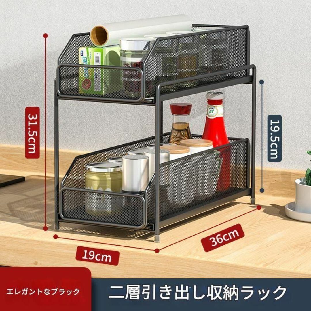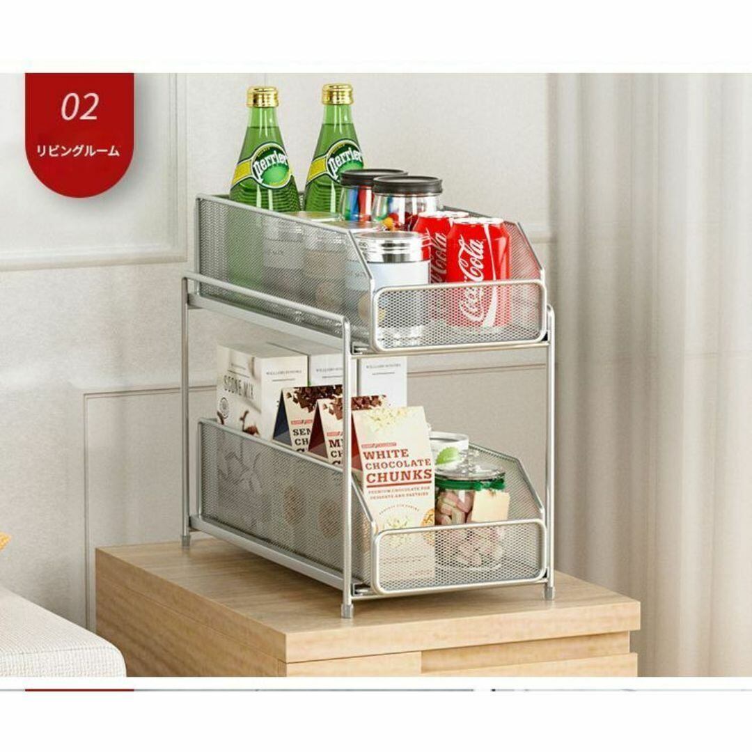 収納ボックス ストレージ キッチン 網状 2段 スライド式 カラーバリエーション ブラック シルバー 黒 銀 おしゃれ 収納ケース 室内 多機能 耐久性 食品