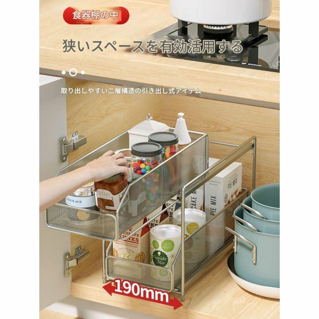 キッチンにぴったりな、2段収納ボックス。通気性の良い網状デザインで食品の保管にも最適。スライド式で取り出しやすく、ブラックとシルバーのスタイリッシュなカラーバリエーション。室内で使いやすく、多機能かつ耐久性にも優れたおしゃれな収納ケースです。