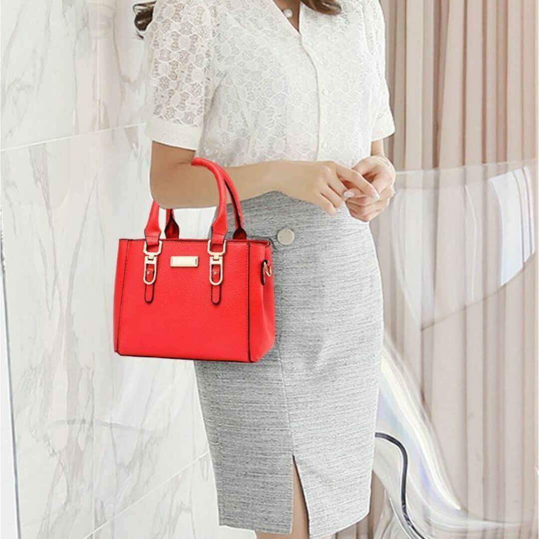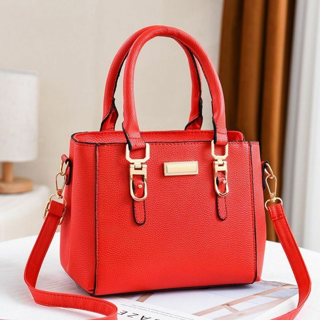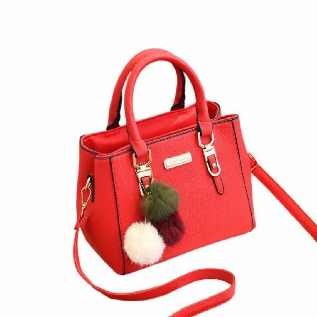 ハンドバッグ ショルダーバッグ レディース おしゃれ かわいい 長方形 多様なカラーバリエーション ショルダー ストラップ 旅行 ショッピング ビジネス デート 持ち手 ファスナー式 コンパクト ふわふわのストラップ付 レッド 赤