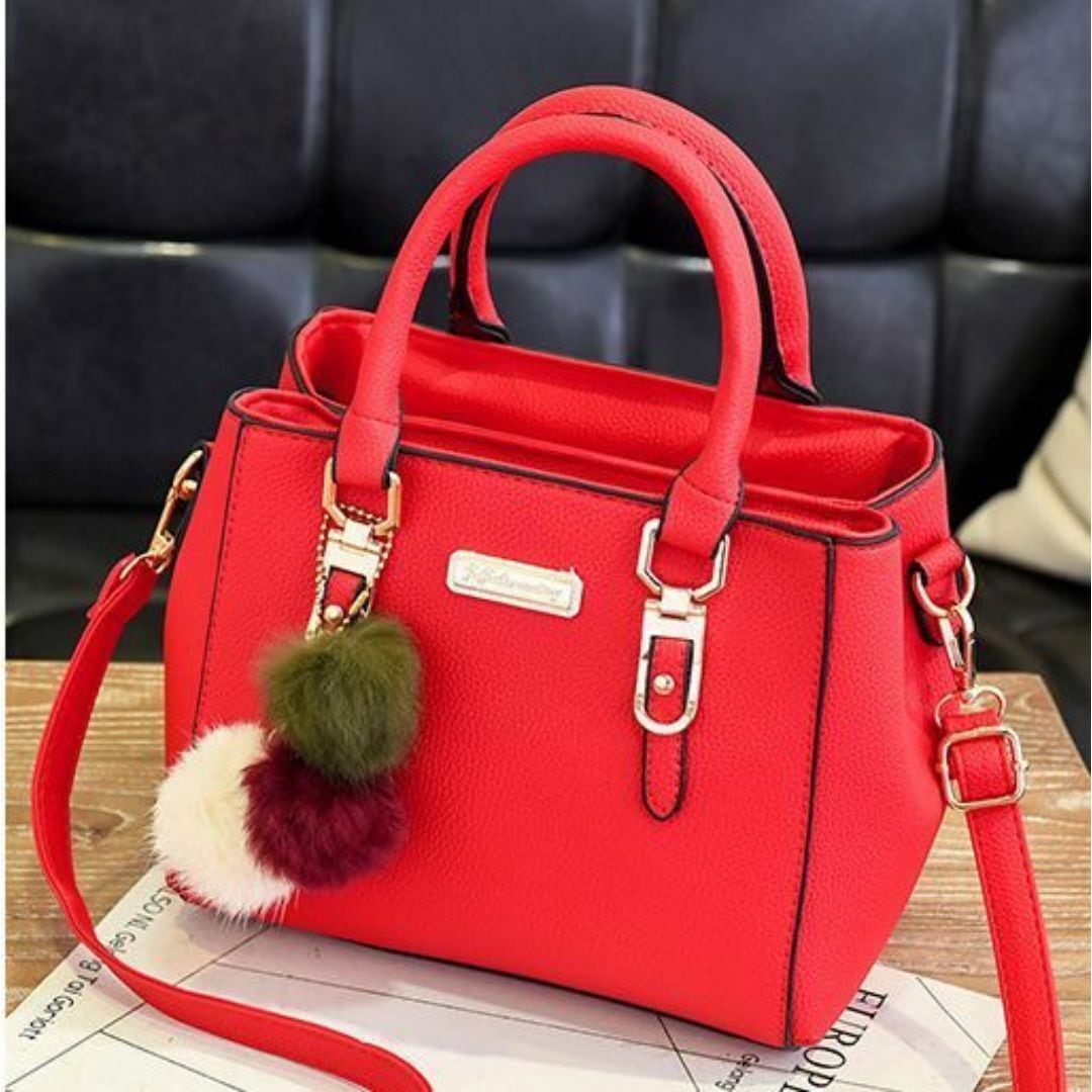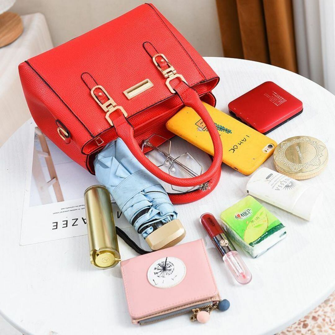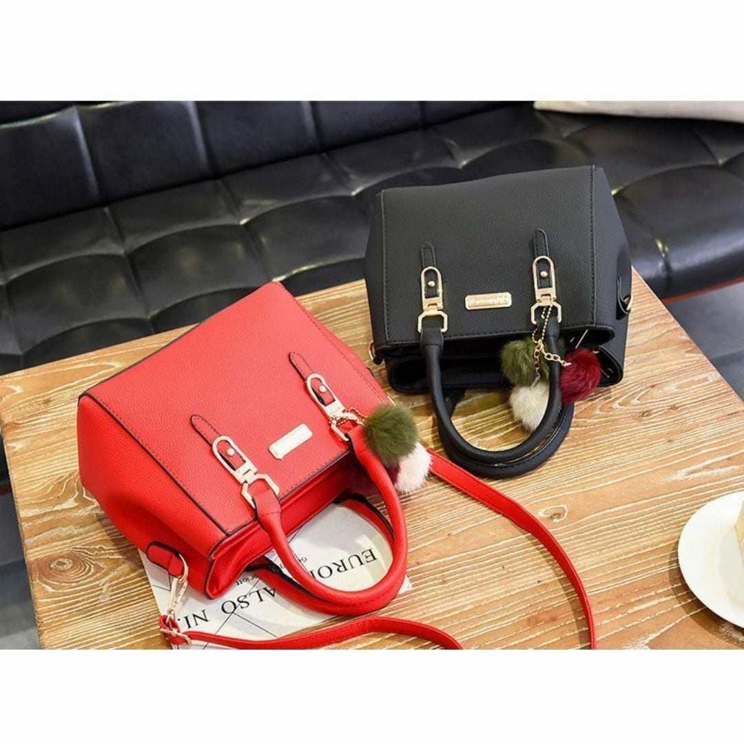 ハンドバッグ ショルダーバッグ レディース おしゃれ かわいい 長方形 多様なカラーバリエーション ショルダー ストラップ 旅行 ショッピング ビジネス デート 持ち手 ファスナー式 コンパクト ふわふわのストラップ付 レッド 赤