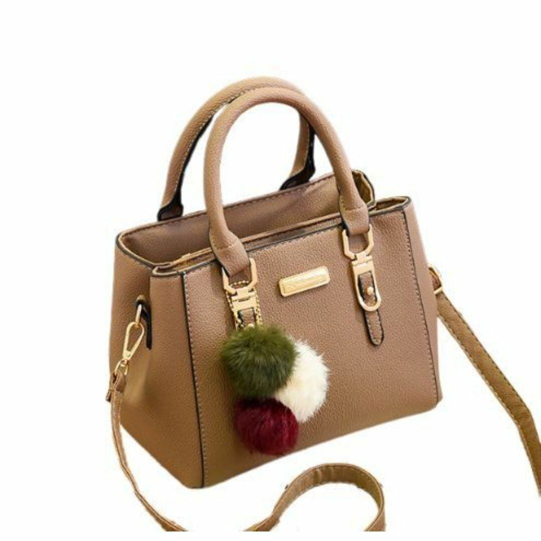 ハンドバッグ ショルダーバッグ レディース おしゃれ かわいい 長方形 多様なカラーバリエーション ショルダー ストラップ 旅行 ショッピング ビジネス デート 持ち手 ファスナー式 コンパクト ふわふわのストラップ付 ブラウン 茶色