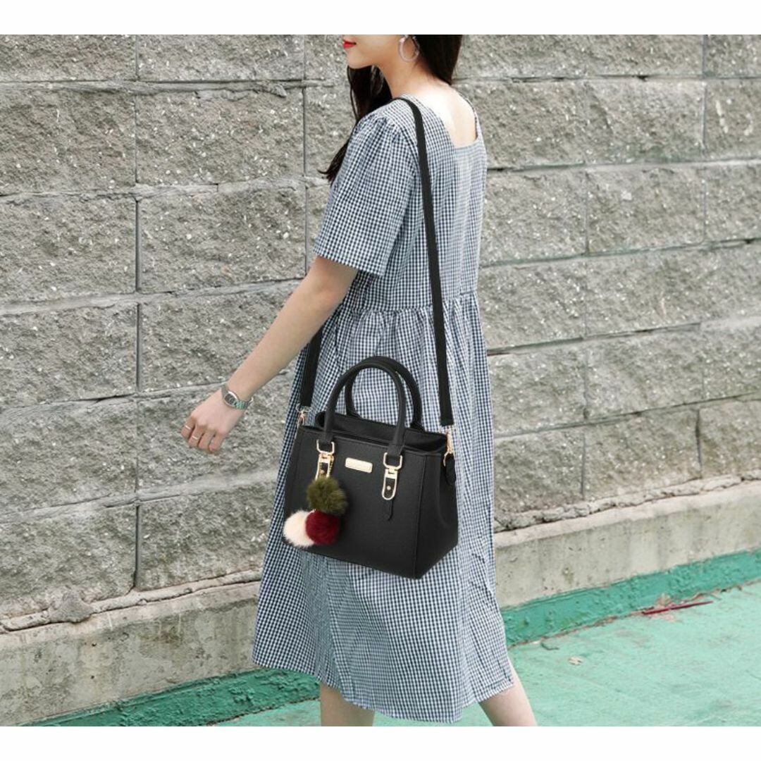 ハンドバッグ ショルダーバッグ レディース おしゃれ かわいい 長方形 多様なカラーバリエーション ショルダー ストラップ 旅行 ショッピング ビジネス デート 持ち手 ファスナー式 コンパクト ふわふわのストラップ付 ブラック 黒