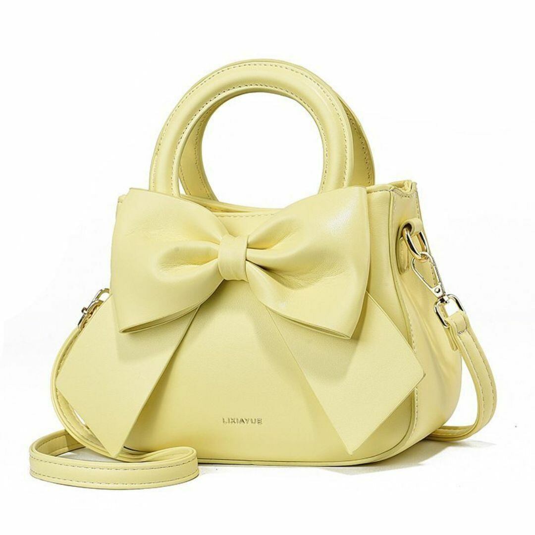 ハンドバッグ ショルダーバッグ レディース おしゃれ かわいい 大きなリボン 多様なカラーバリエーション ショルダー ストラップ 旅行 ショッピング ビジネス デート 円形の持ち手 ファスナー式 コンパクト イエロー 黄色
