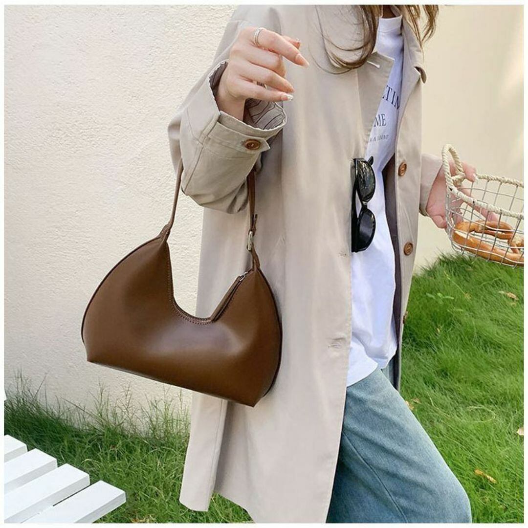 ショルダーバッグ レディース おしゃれ エレガント 光沢のある表面 多様なカラーバリエーション ショルダー ストラップ 旅行 ショッピング ビジネス デート ファスナー式 大容量 シンプル ブラウン