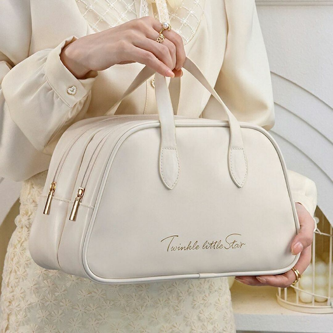 すっきりとしたデザインと優れた機能性を兼ね備えたアイテムです。化粧品をしっかり収納できる大容量ながらもコンパクトなサイズ感で、旅行や日常使いにも最適。外側はピンクのデザインで、内側には複数の仕切りがあり、リップやアイシャドウなどの小物が整理しやすくなっています。軽量で持ち運びも楽々、必要なときにサッと取り出せる便利さを提供します。さらに、カラーバリエーションも豊富で、お好みに合わせて選べる楽しさがあります。あなたのメイクを美しく、スマートにサポートする理想的なポーチです!