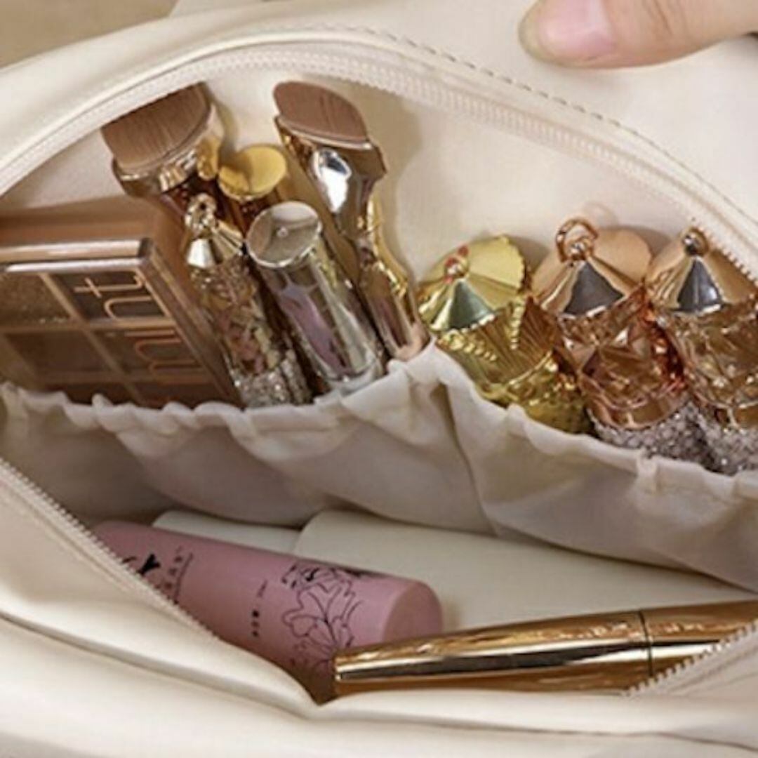 すっきりとしたデザインと優れた機能性を兼ね備えたアイテムです。化粧品をしっかり収納できる大容量ながらもコンパクトなサイズ感で、旅行や日常使いにも最適。外側はブラウンのデザインで、内側には複数の仕切りがあり、リップやアイシャドウなどの小物が整理しやすくなっています。軽量で持ち運びも楽々、必要なときにサッと取り出せる便利さを提供します。さらに、カラーバリエーションも豊富で、お好みに合わせて選べる楽しさがあります。あなたのメイクを美しく、スマートにサポートする理想的なポーチです!