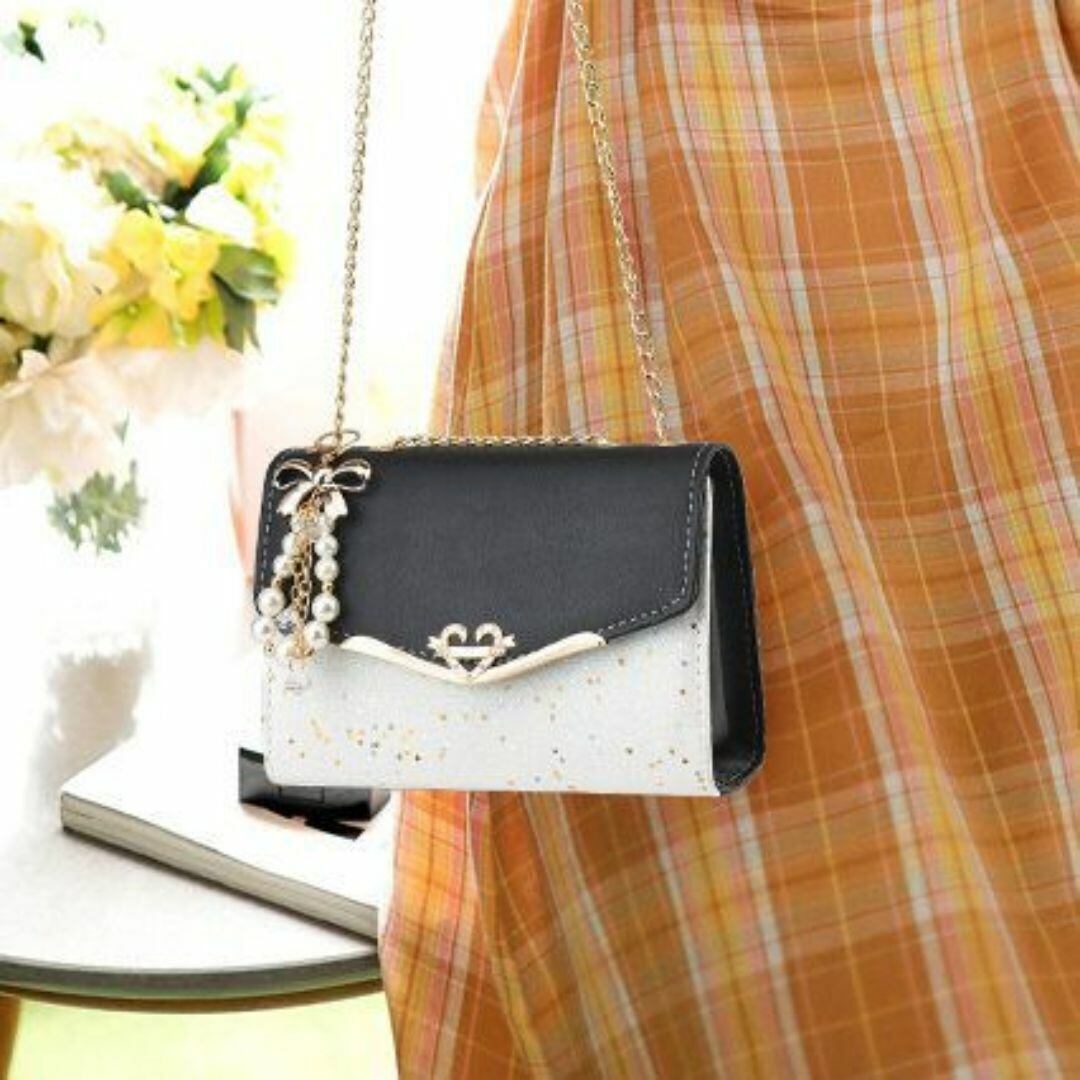 ショルダーバッグ レディース おしゃれ かわいい チャーム付き 小さい星の装飾 コンパクト ハートのワンポイント チェーンタイプの紐 カラーバリエーション ストラップ 旅行 ショッピング ビジネス デート ゴージャス ブラック