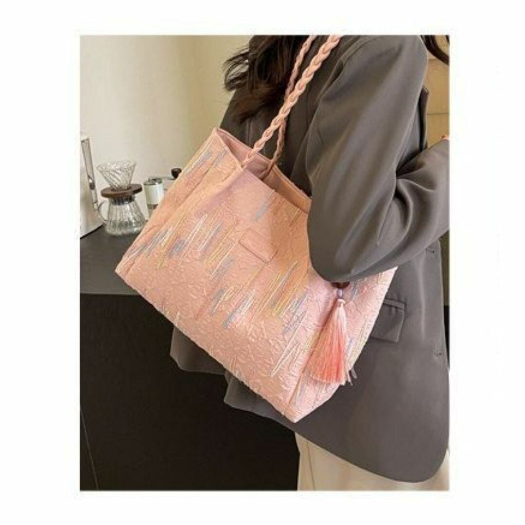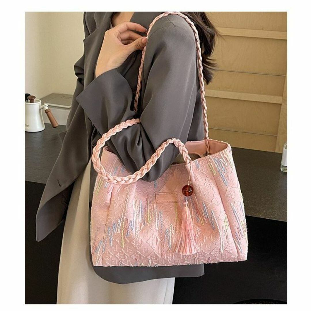 トートバッグ レディース おしゃれ かわいい カラフルなスティッチ模様 チャーム付き 内ファスナー 大容量 カラフルなカラーバリエーション 学生 仕事 旅行 ショッピング ビジネス 買い物 多機能 カジュアル 布製 ピンク