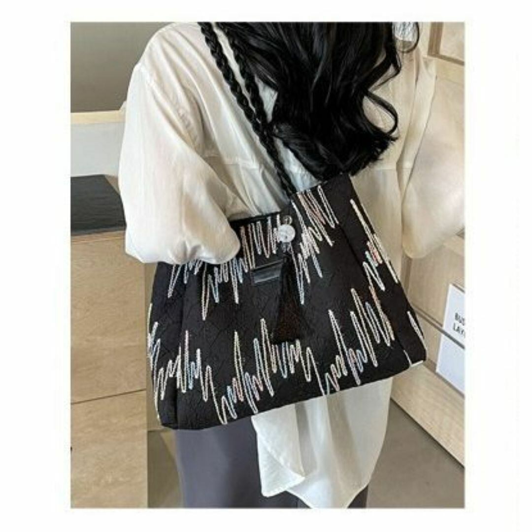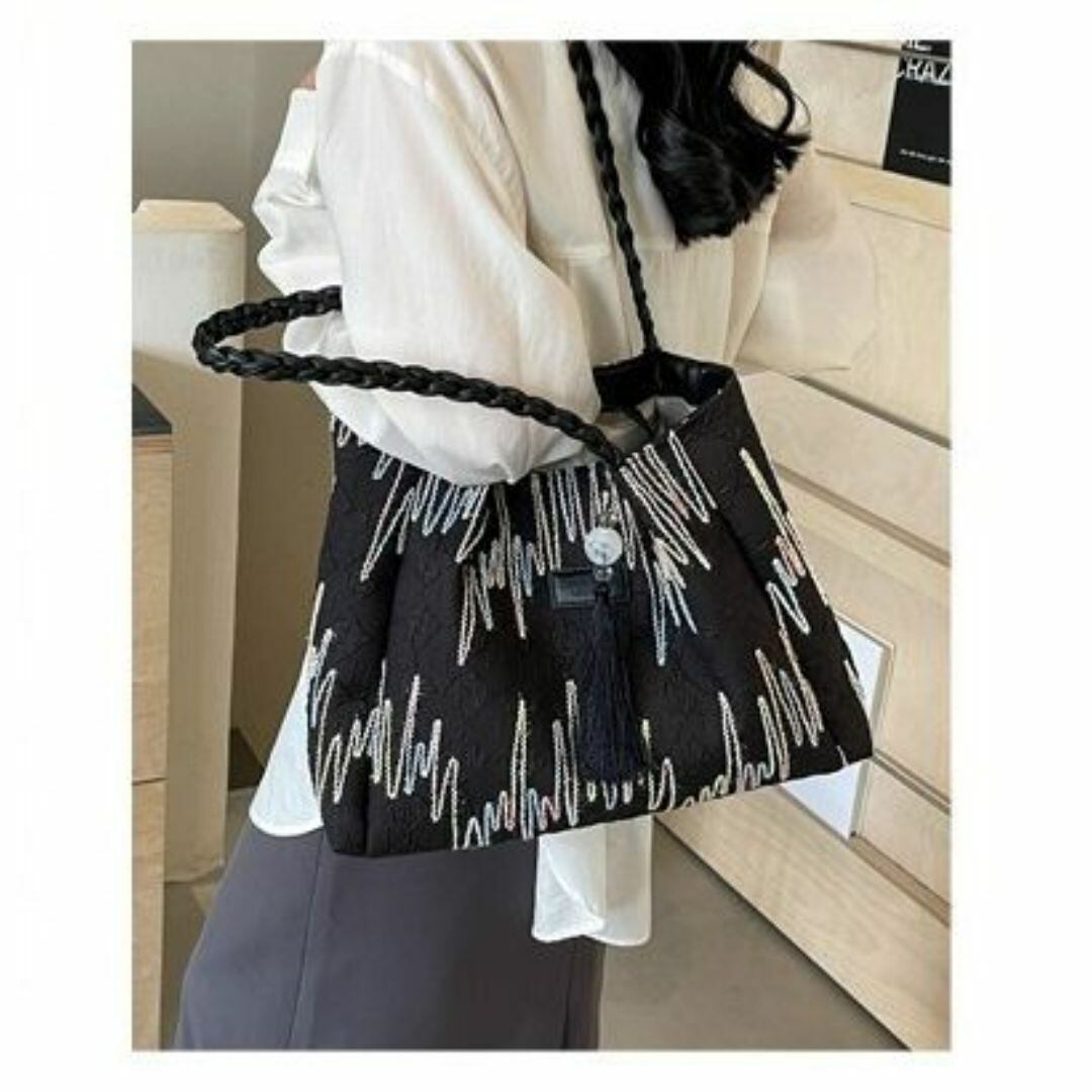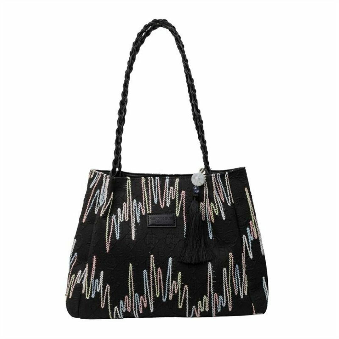 トートバッグ レディース おしゃれ かわいい カラフルなスティッチ模様 チャーム付き 内ファスナー 大容量 カラフルなカラーバリエーション 学生 仕事 旅行 ショッピング ビジネス 買い物 多機能 カジュアル 布製 ブラック 黒