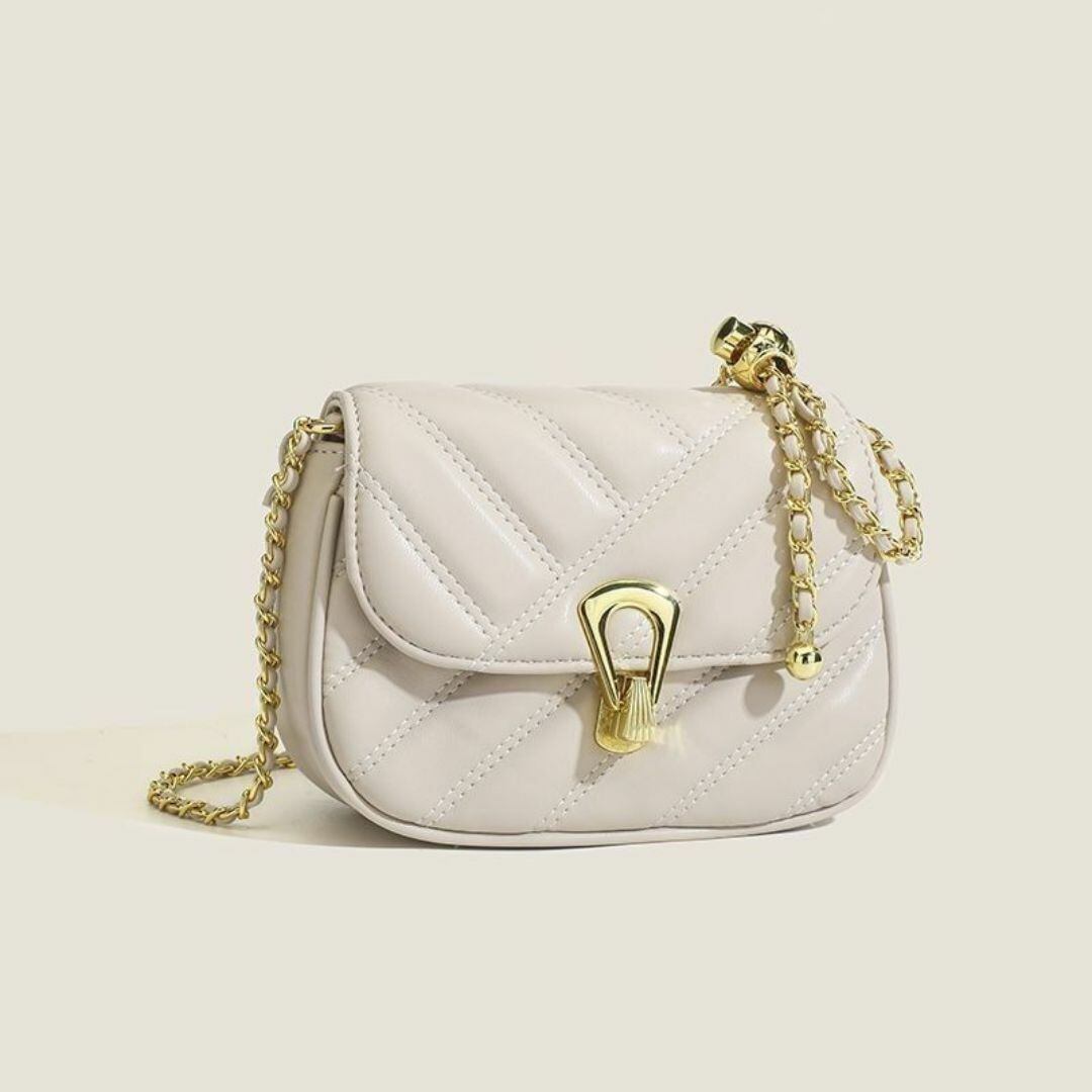 ショルダーバッグ レディース おしゃれ かわいい ゴールドの金具 ポーチサイズ コンパクト エレガント チェーンタイプの紐 ストラップ 旅行 ショッピング ビジネス デート シンプル ホワイト