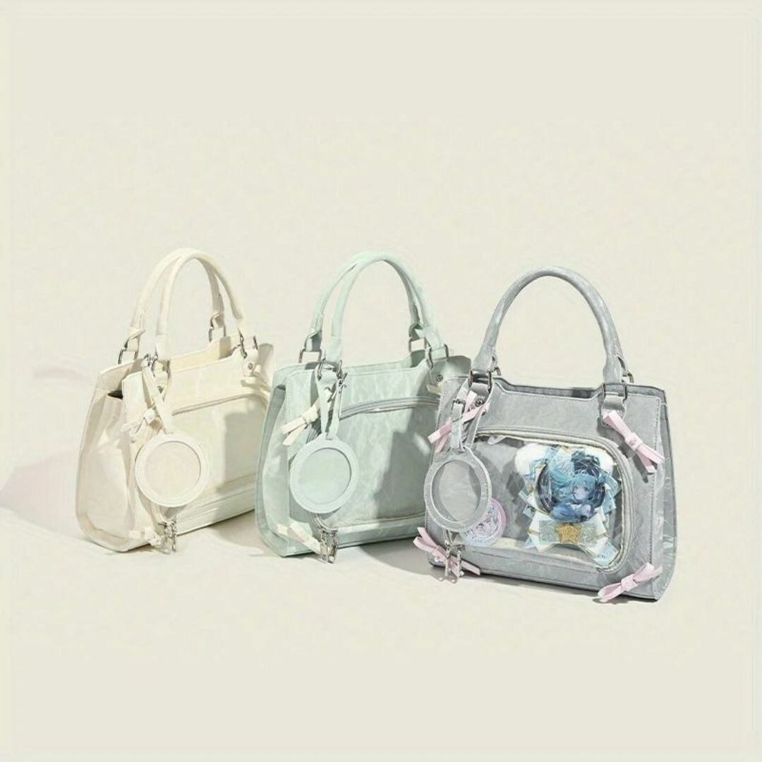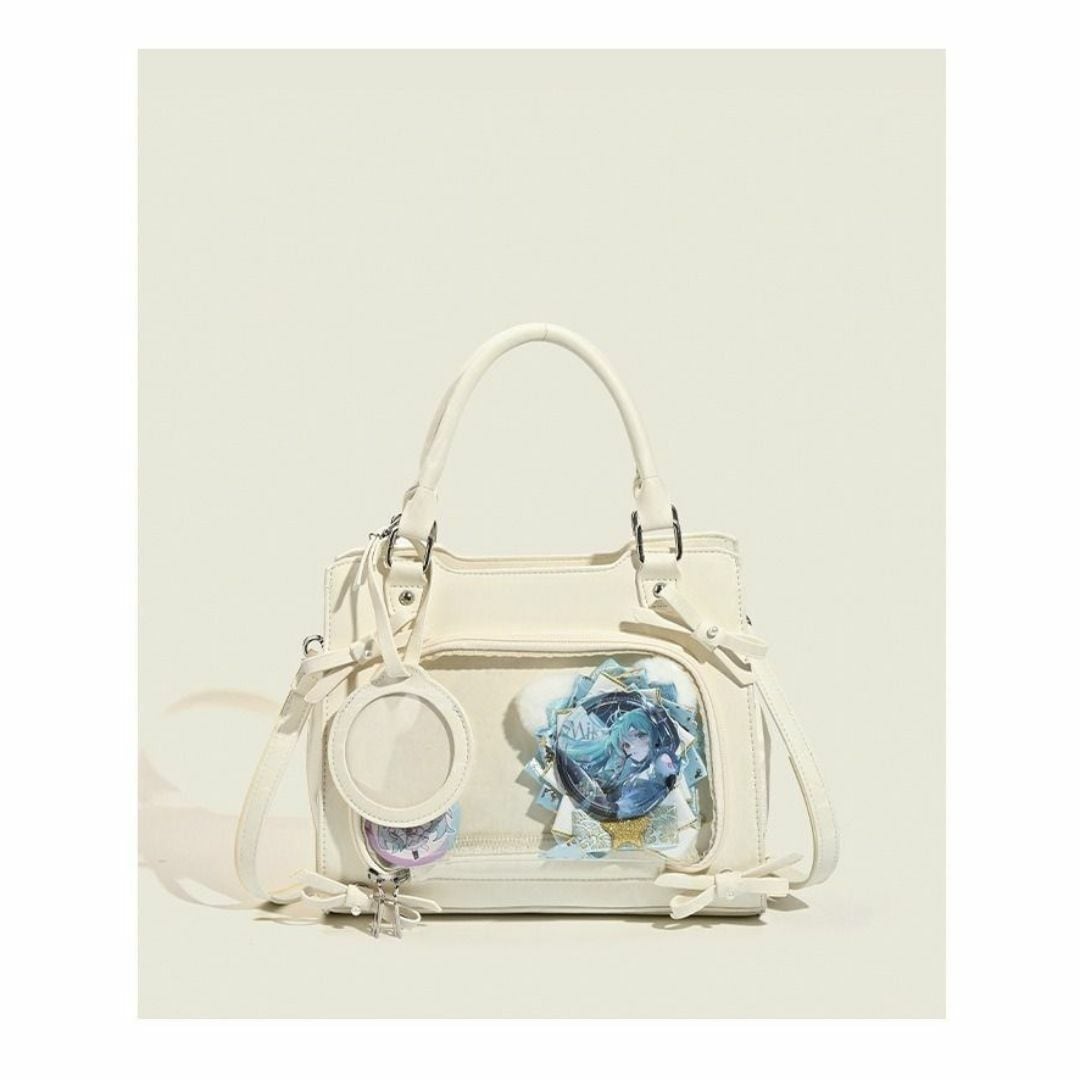 ショルダーバッグ ハンドバッグ レディース オタクバッグ 趣味 中が見えるポケット おしゃれ かわいい 推しの画像を入れる円形の窓ストラップ付き リボンの装飾 カラーバリエーション 旅行 ショッピング デート 推し活 ホワイト