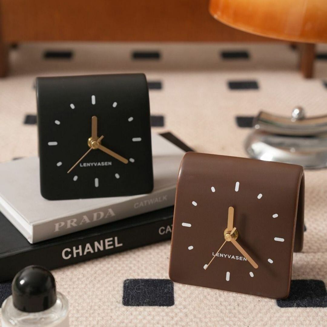 置き時計 置時計 時計 無地 シンプル かわいい グレー 灰色 電池式 アルカリ乾電池 単3形 陶器製 カラーバリエーション 卓上時計 玄関 リビング キッチン トイレ オフィス