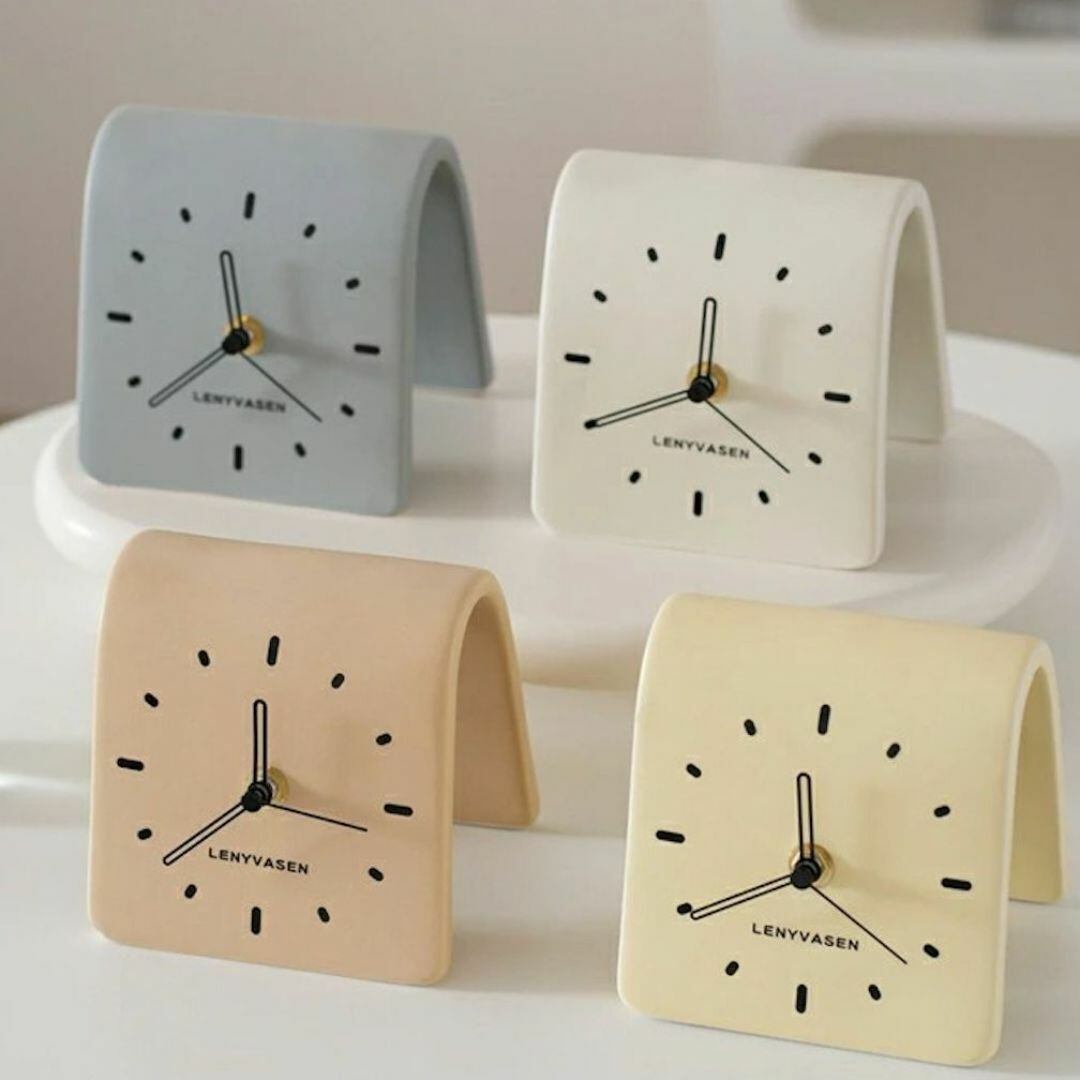 置き時計 置時計 時計 無地 シンプル かわいい ブラウン 茶色 電池式 アルカリ乾電池 単3形 陶器製 カラーバリエーション 卓上時計 玄関 リビング キッチン トイレ オフィス