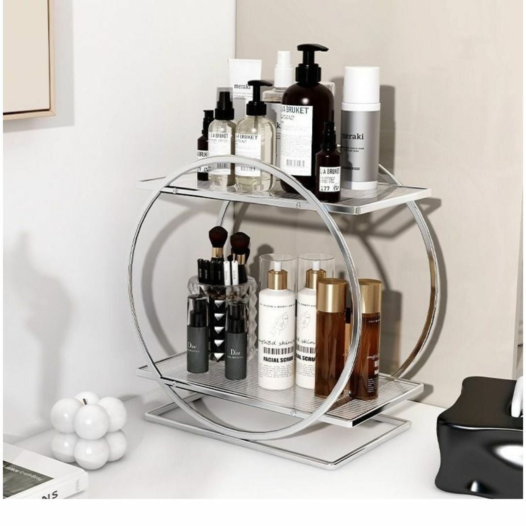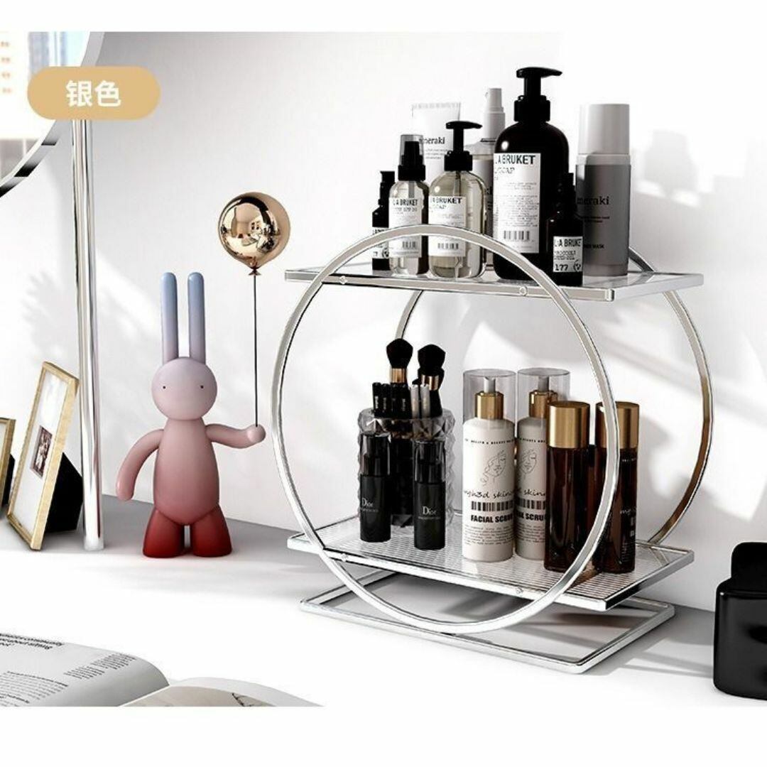 収納ラック コスメラック テーブル用 2つのリングの柱 おしゃれ フルメタリック ゴージャス カラーバリエーション シルバー 取り外し可能 多機能 リビング キッチン 寝室 バスルーム 洗面台