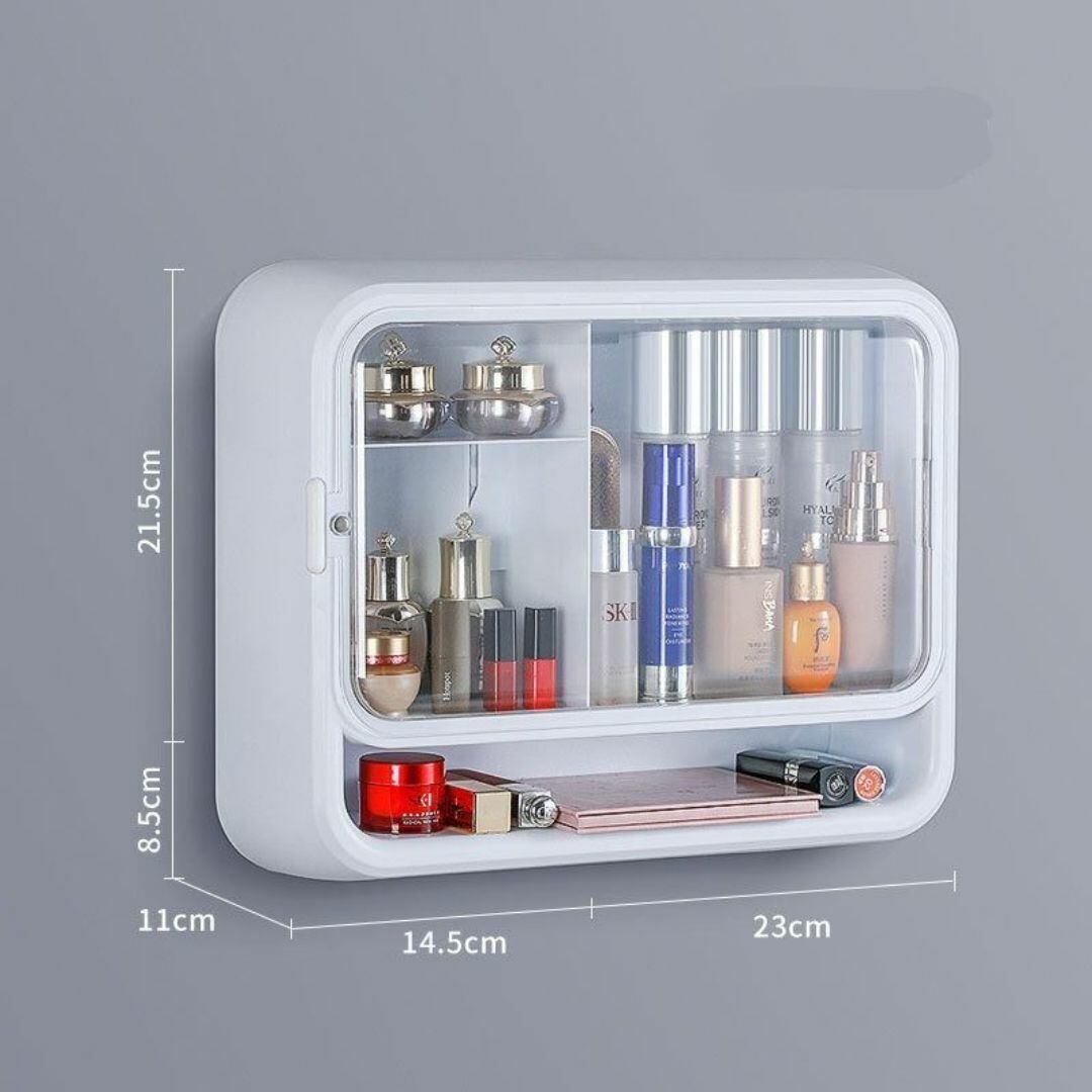 収納ラック コスメラック 壁掛け用 引き戸付き おしゃれ 透明の扉 カラフル かわいい カラーバリエーション 取り外し可能 多機能 リビング キッチン 寝室 バスルーム 洗面台 小分けの棚 防水 ホワイト