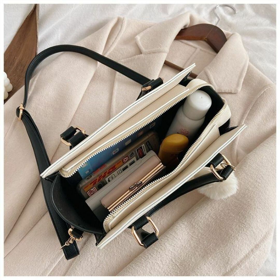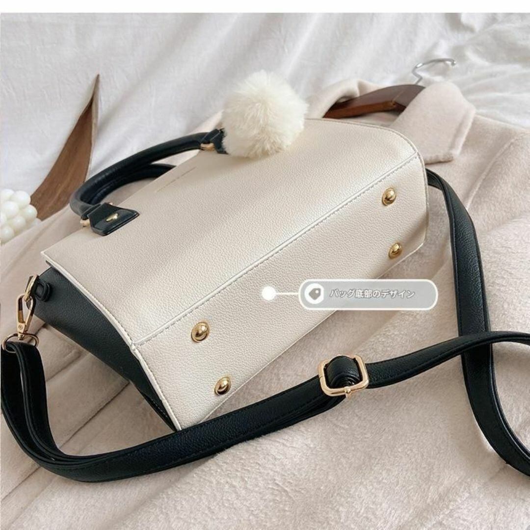 ハンドバッグ ショルダーバッグ レディース おしゃれ かわいい チャーム付き ホワイトのポンポン カラーバリエーション ブラック ブラックホワイト ピンクホワイトショルダー ストラップ 旅行 ショッピング ビジネス デート ファスナー式