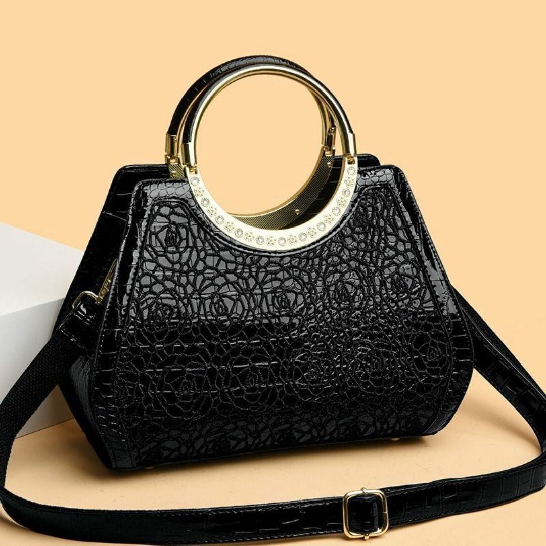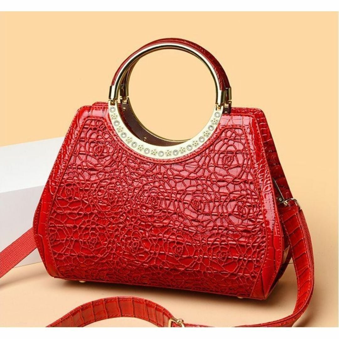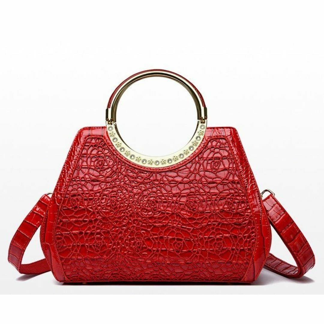薔薇を模した刺繍が前面に施された、華やかで上品なレディース用ショルダーバッグ&ハンドバッグ。円形の持ち手が特徴的で、デザイン性の高いアクセントになっています。シンプルながらも個性が光る一品で、カジュアルな日常使いから、デートやお出かけまで幅広く活躍。ショルダーストラップ付きで、用途に合わせて手持ちと肩掛けの2WAYで使えます。レッド・ブラック・ホワイトの3色展開で、コーディネートにも取り入れやすいカラーバリエーションです。