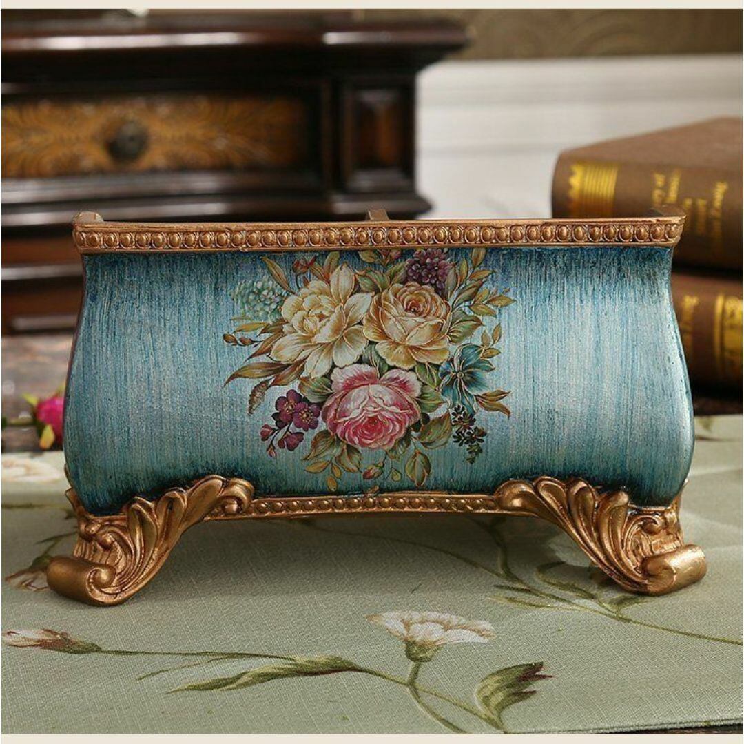 ゴージャスなソファをモチーフにした、ユニークで華やかなデザインの小物入れ収納ボックス。全体は落ち着いたブルーを基調とし、中央にあしらわれた花のワンポイントが上品なアクセントになっています。内側はシルバーで仕上げられており、光を反射して上品な輝きを演出。3つの仕切られたスペースでペンや小物を整理しやすく、ペン立てとしても活躍します。デスクやドレッサー、玄関先など、さまざまな場所で使える多機能なインテリア小物です。